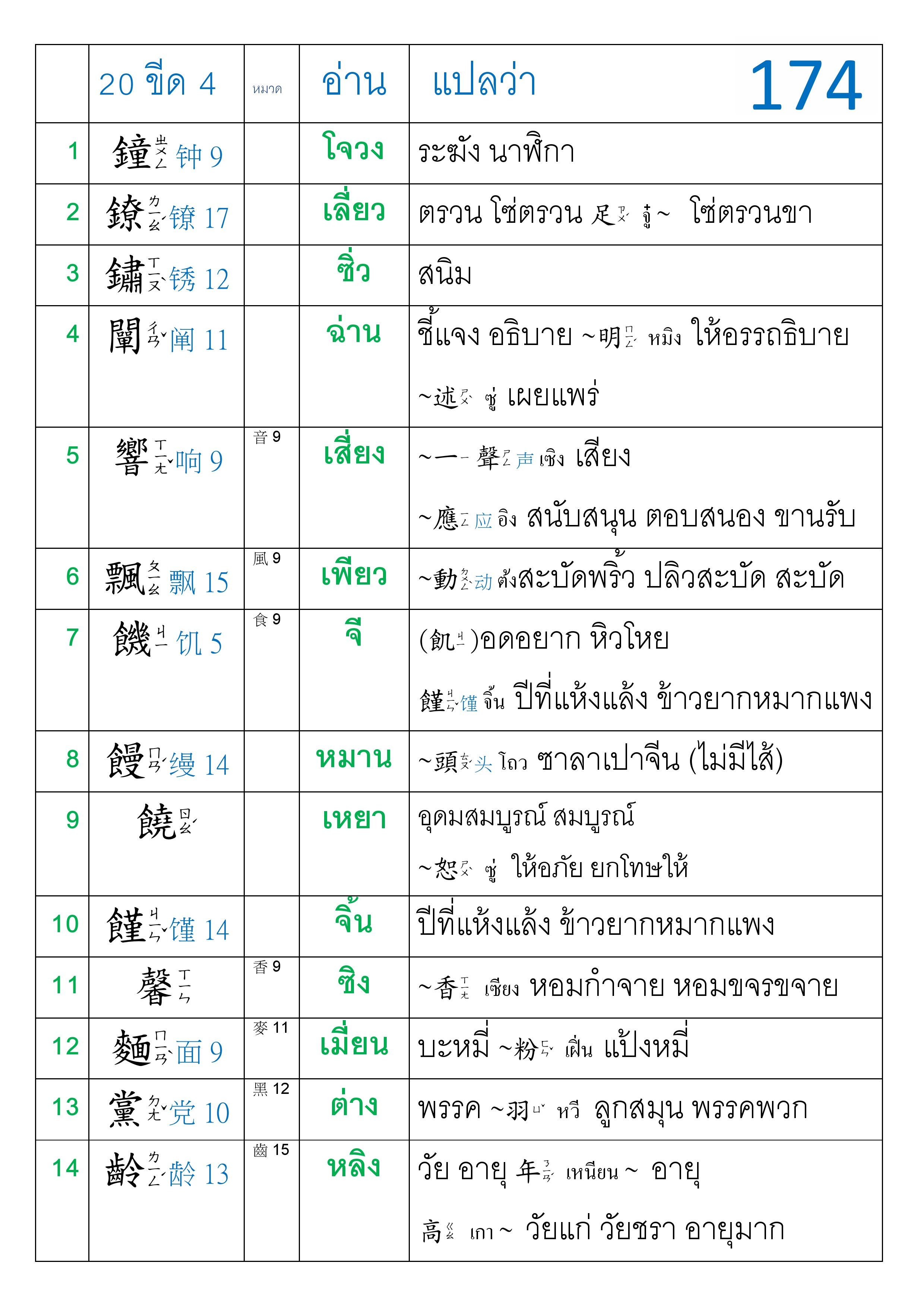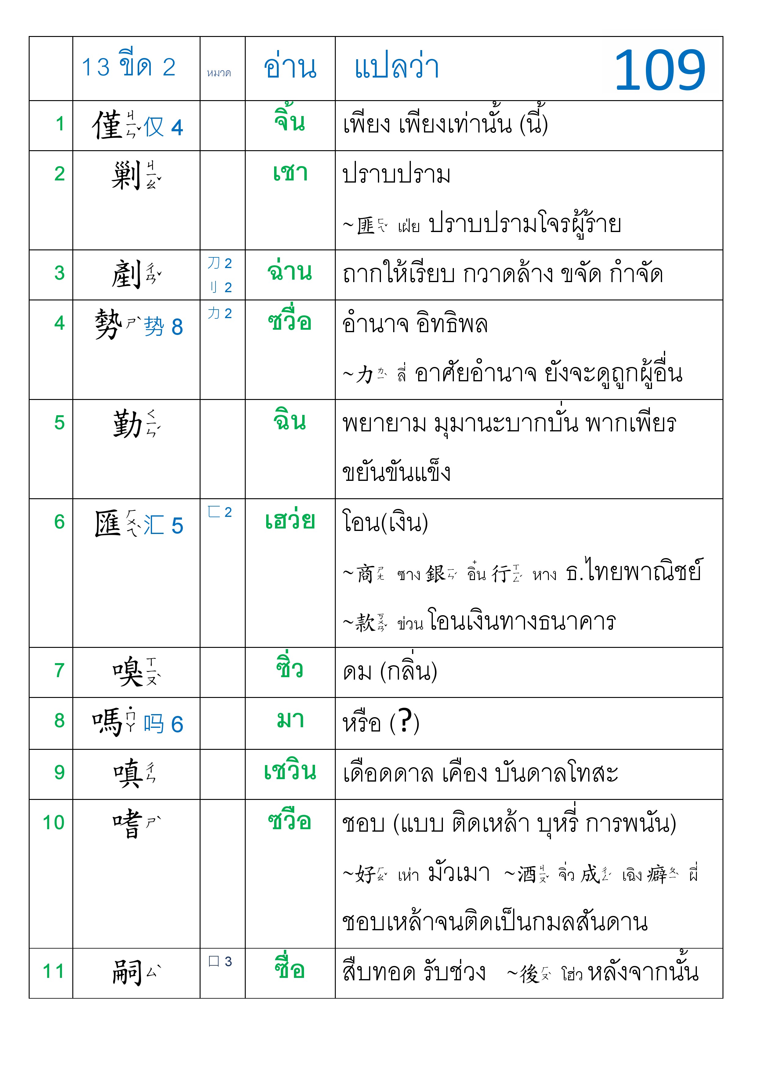 อักษรจีนเต็ม / คำย่อ - จำนวนขีด พร้อม จู้อิน |