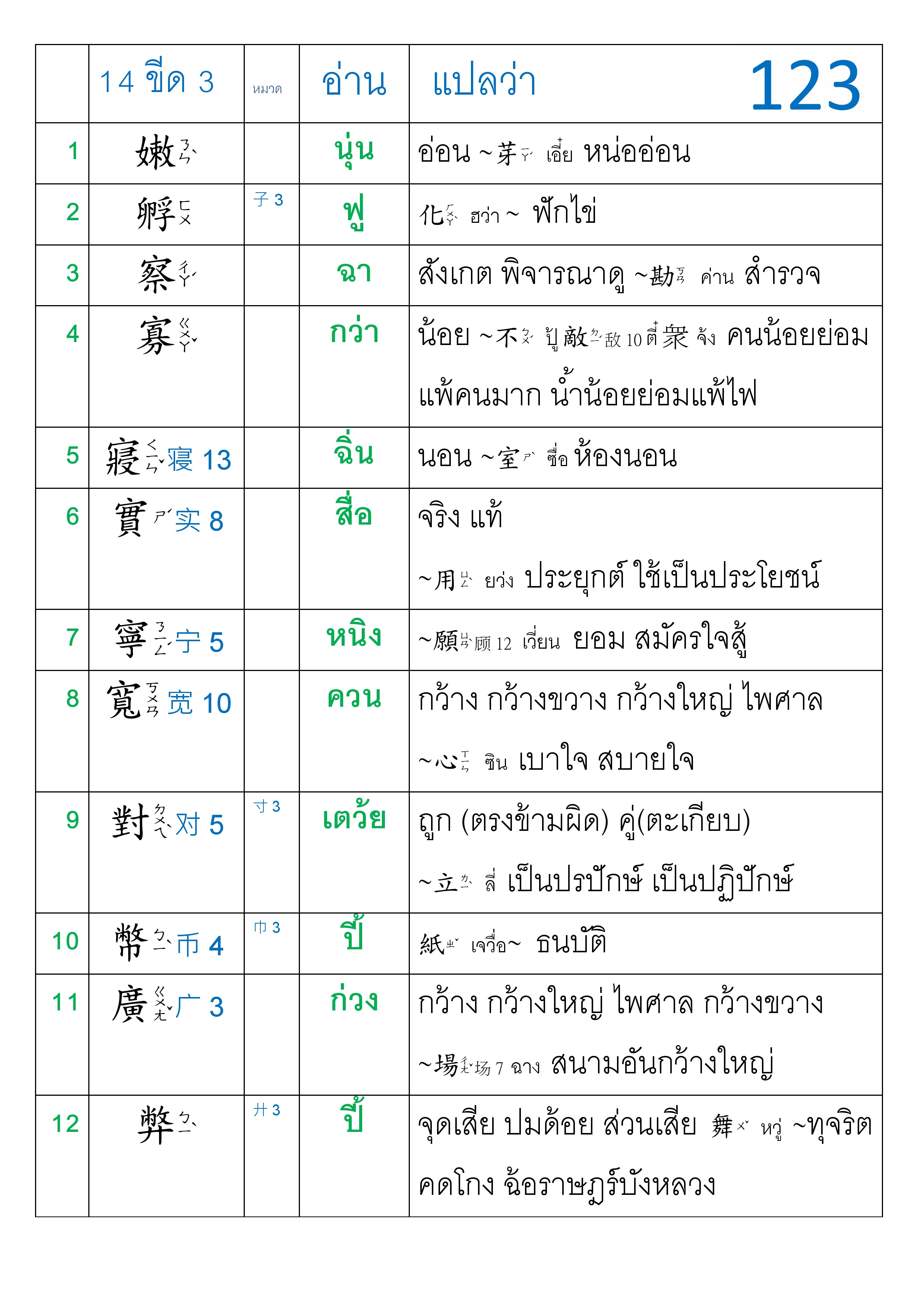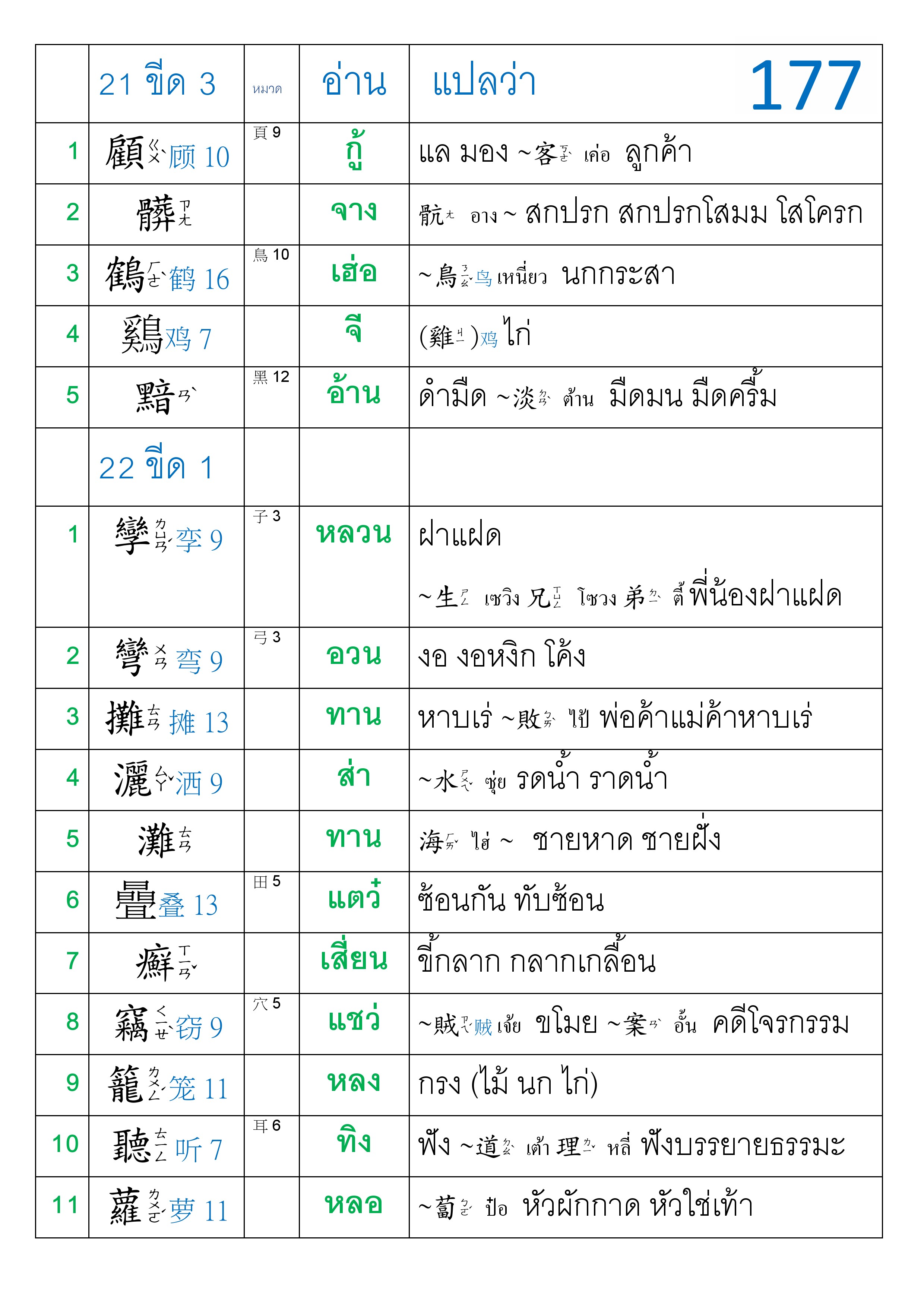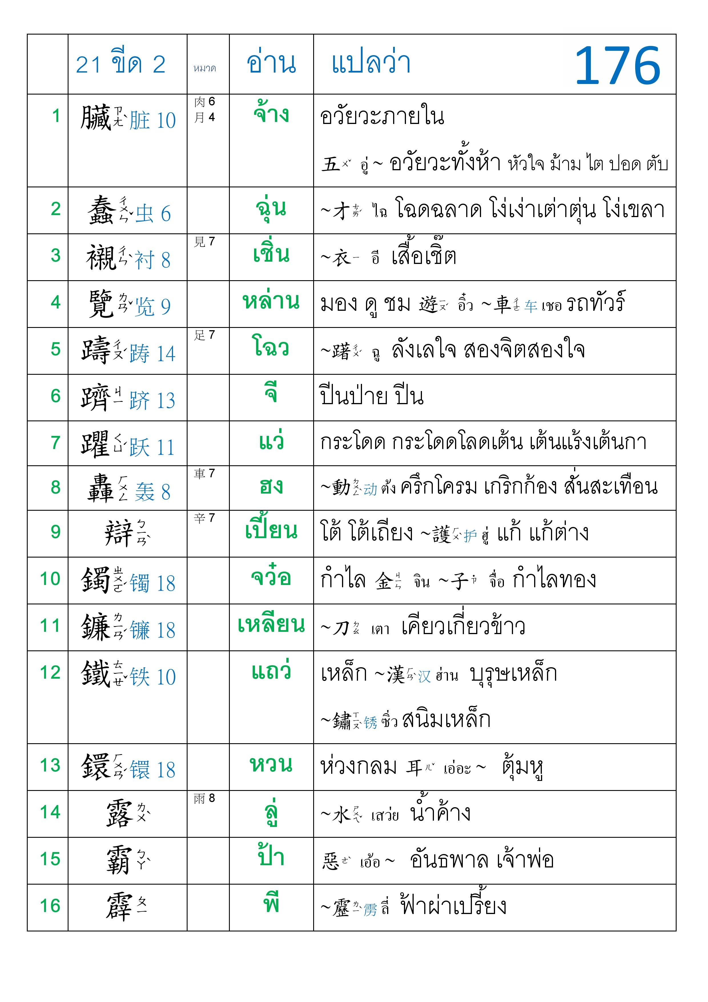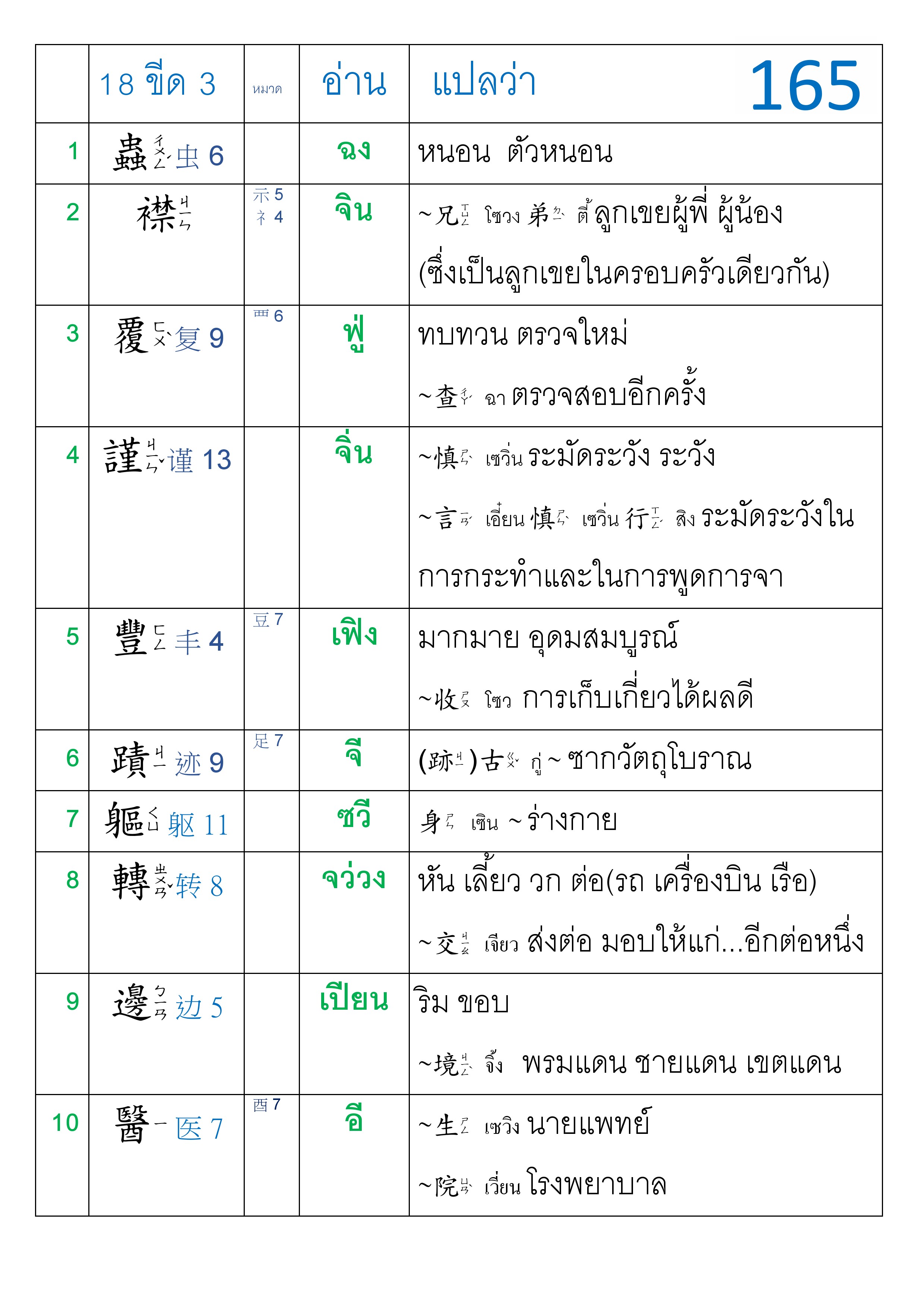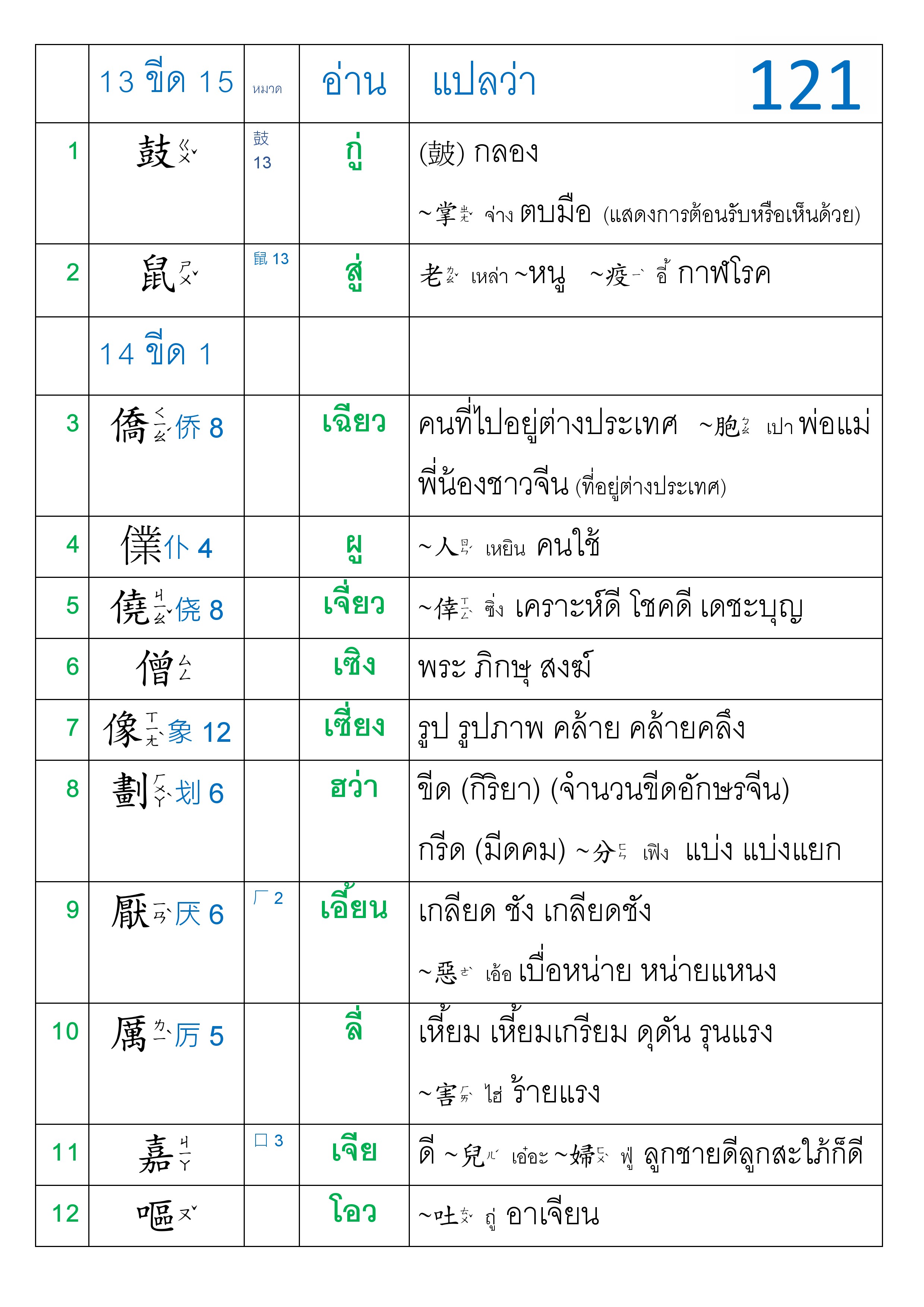อักษรจีนเต็ม / คำย่อ - จำนวนขีด พร้อม จู้อิน |