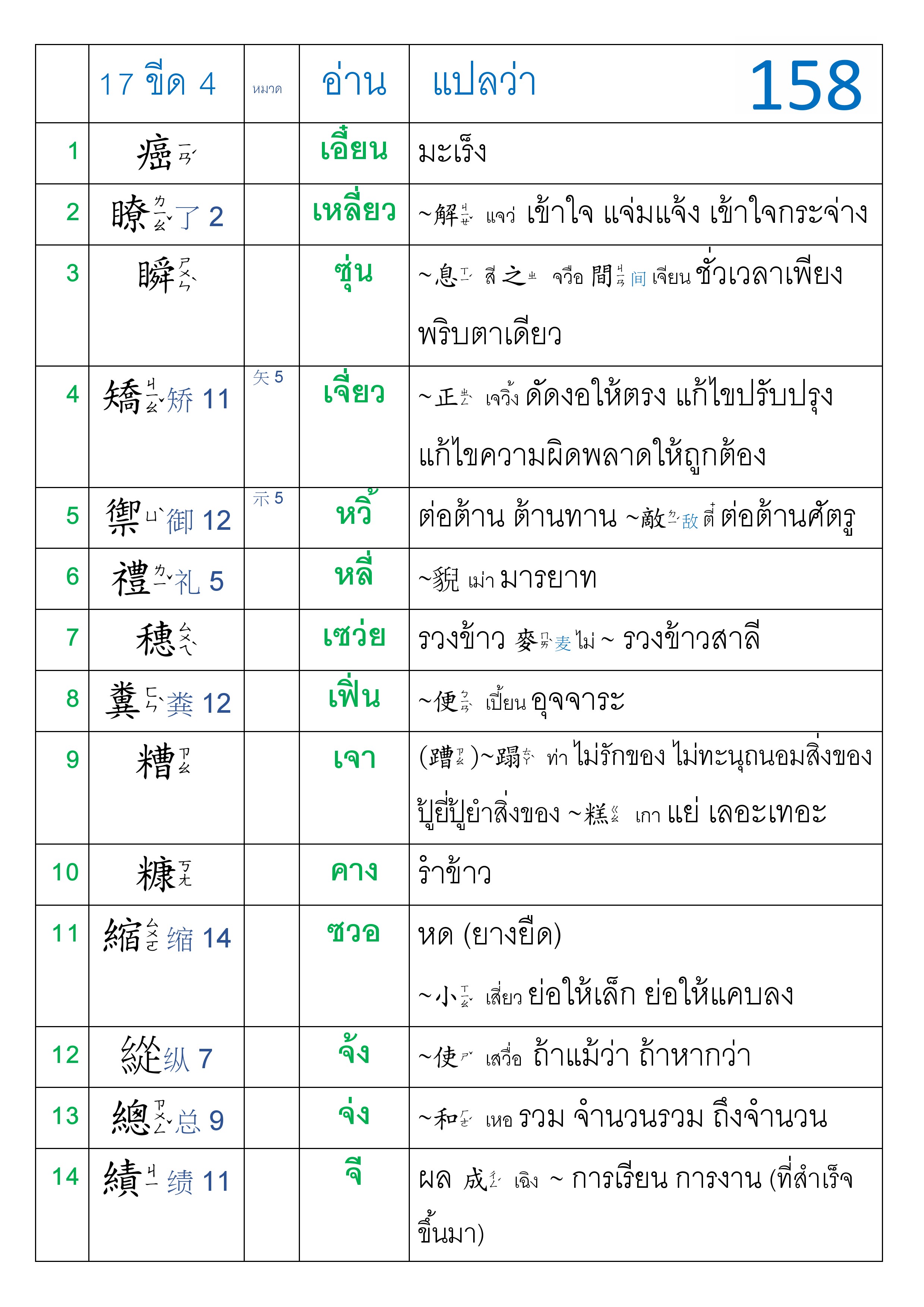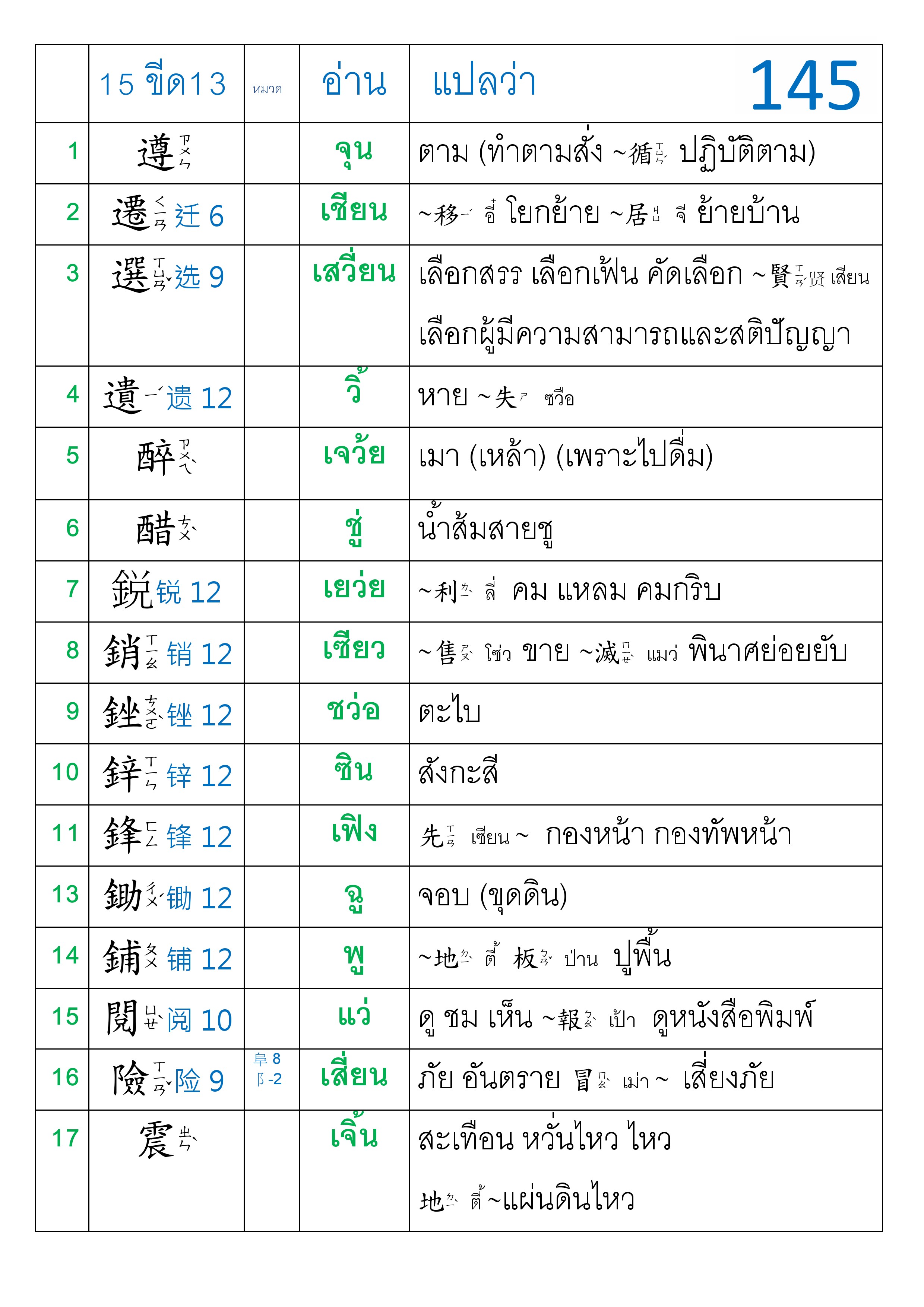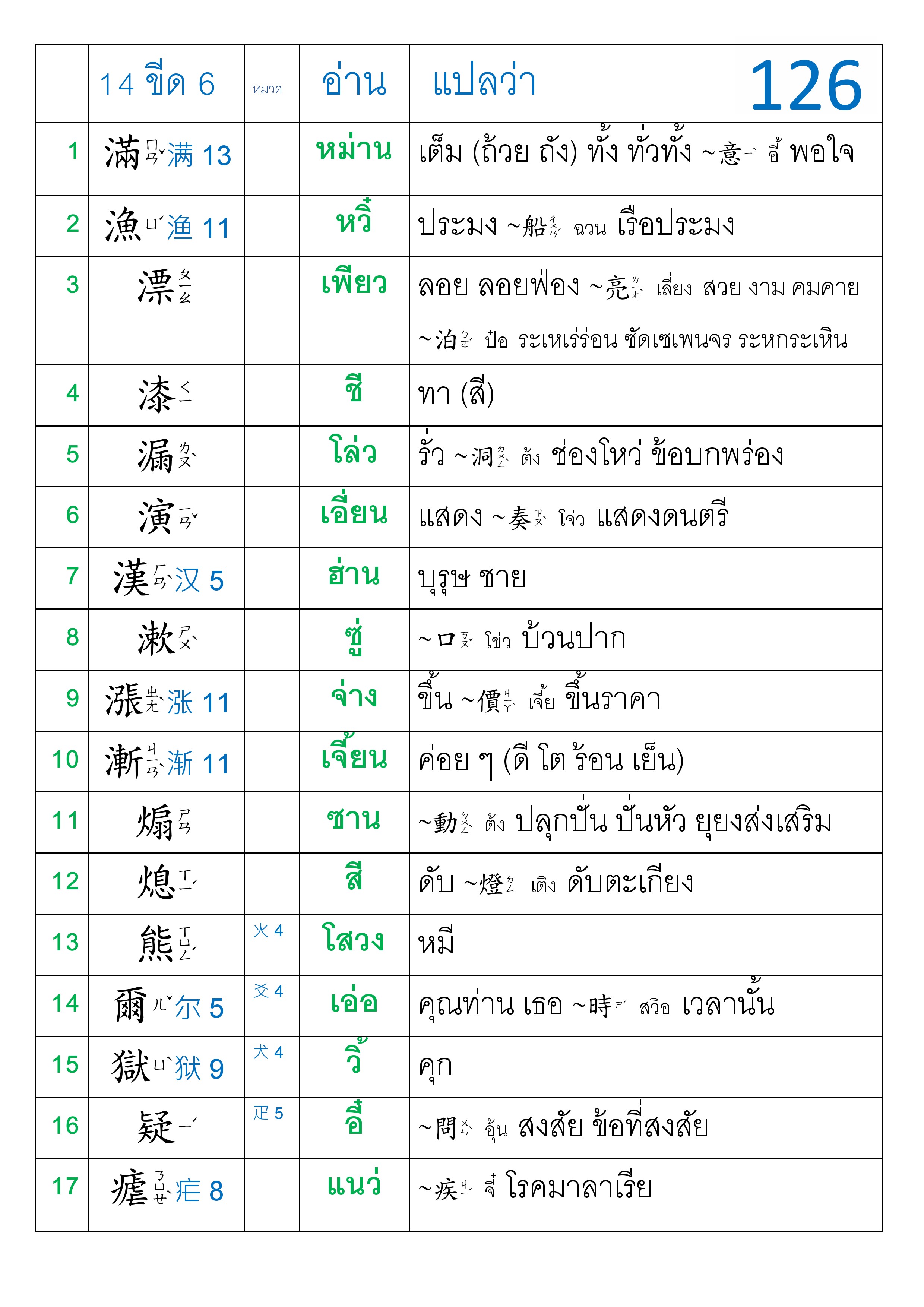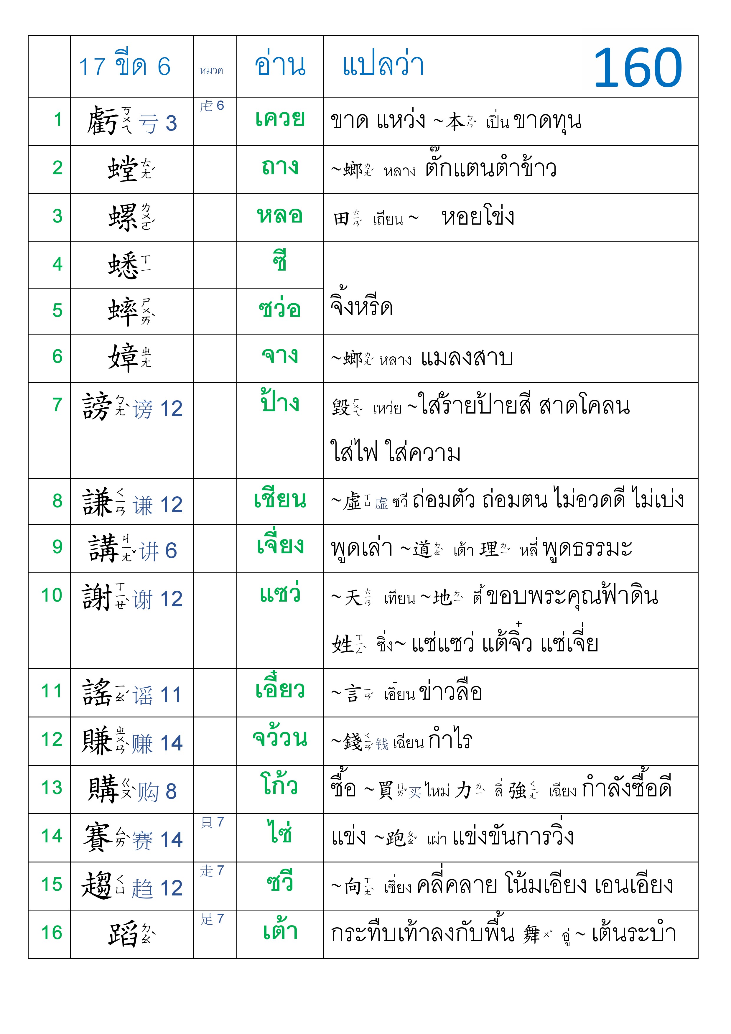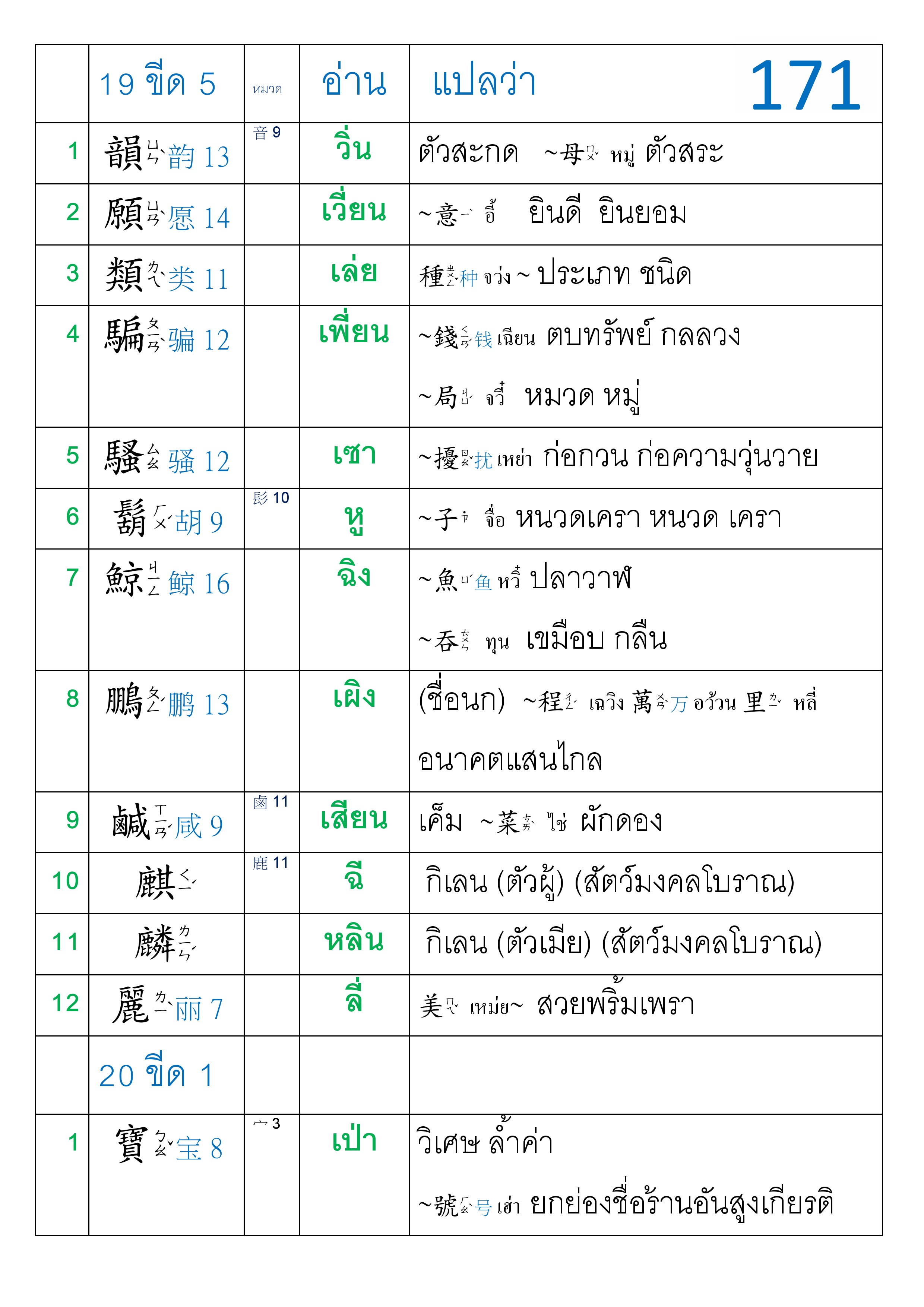 อักษรจีนเต็ม / คำย่อ - จำนวนขีด พร้อม จู้อิน |