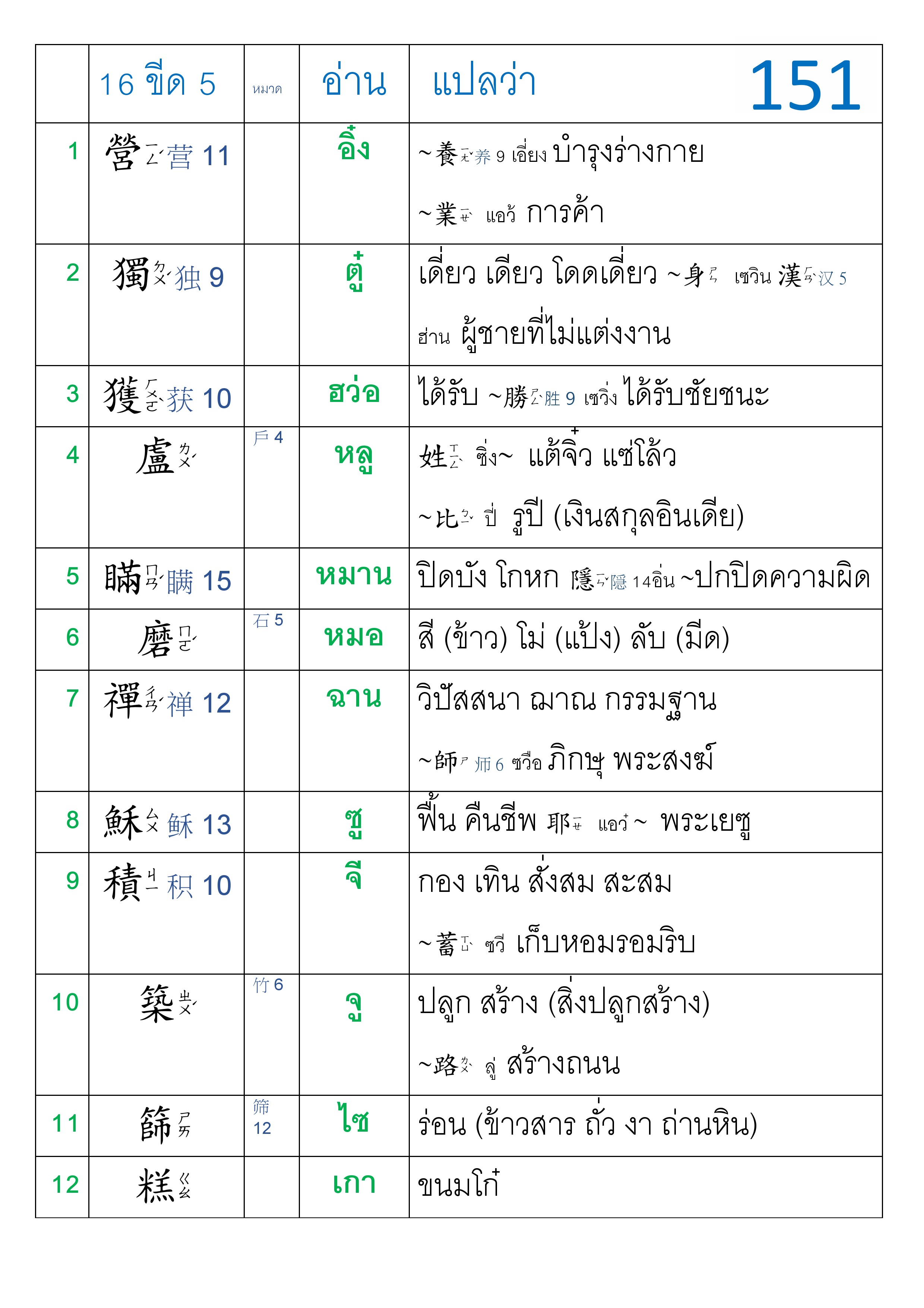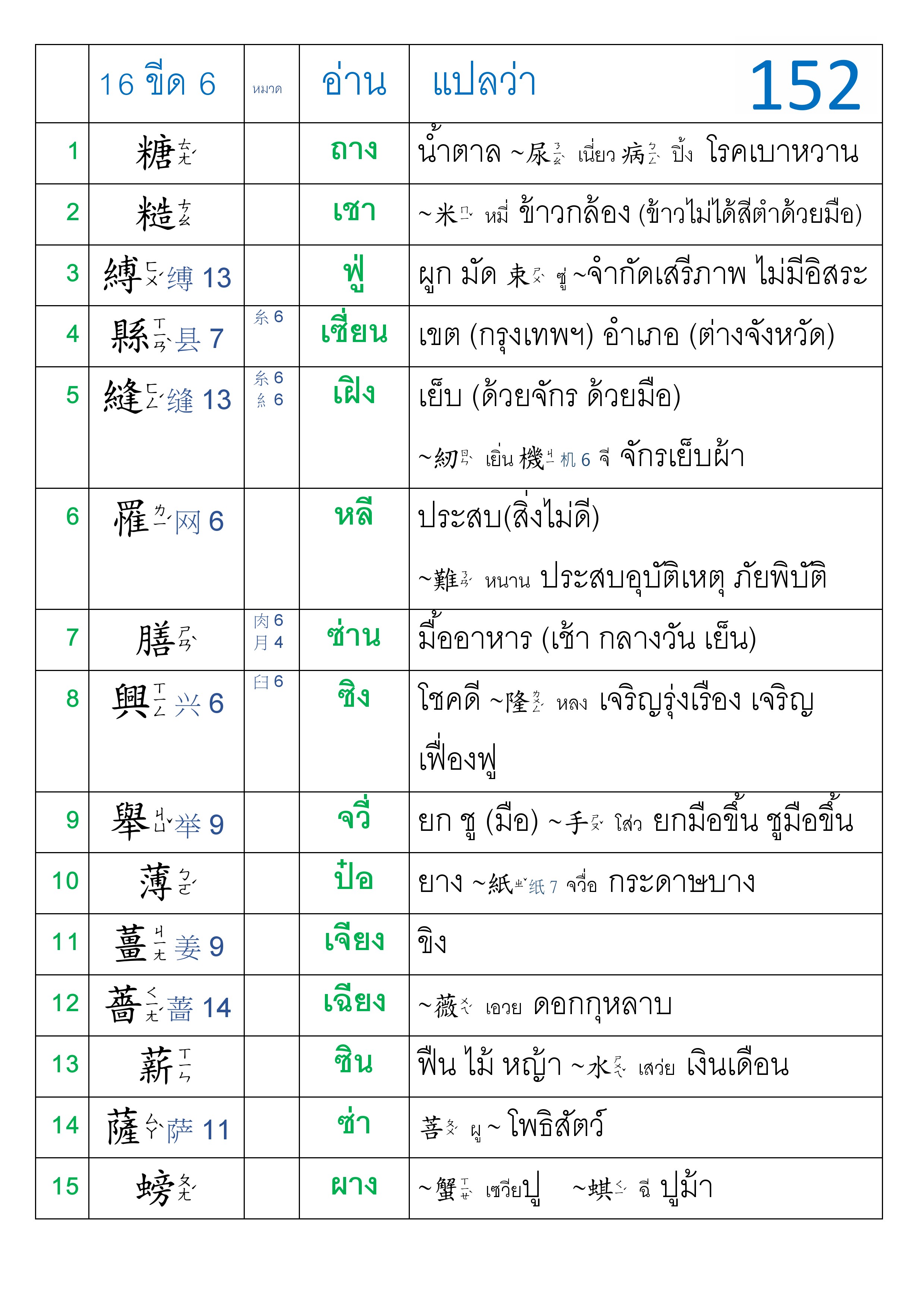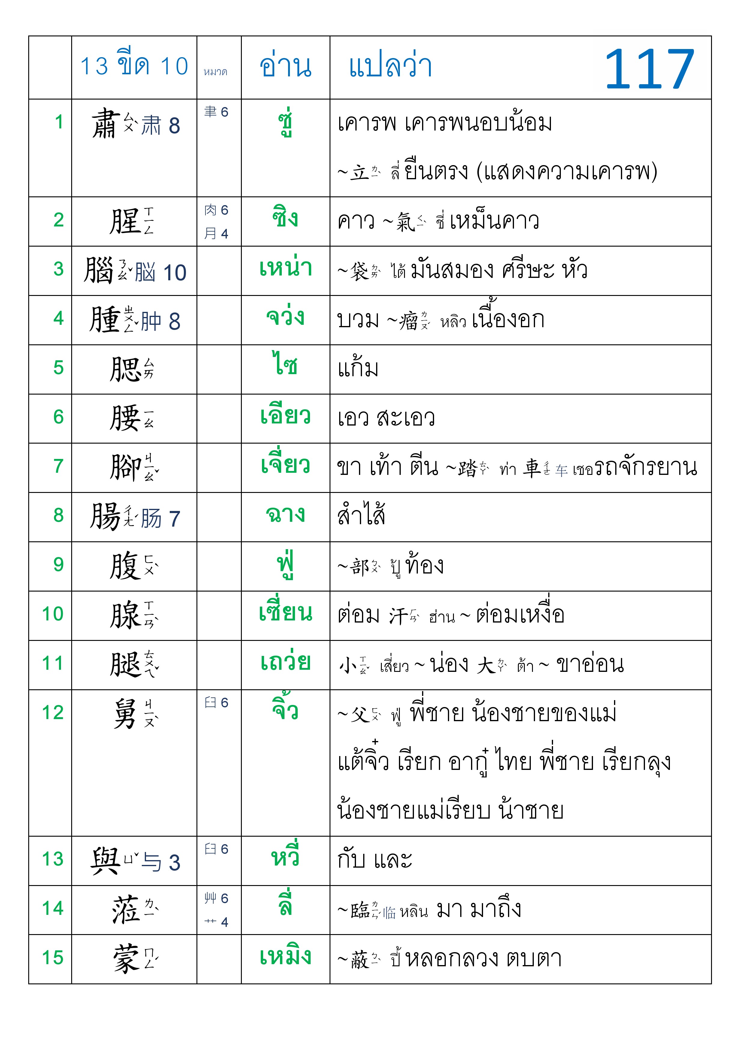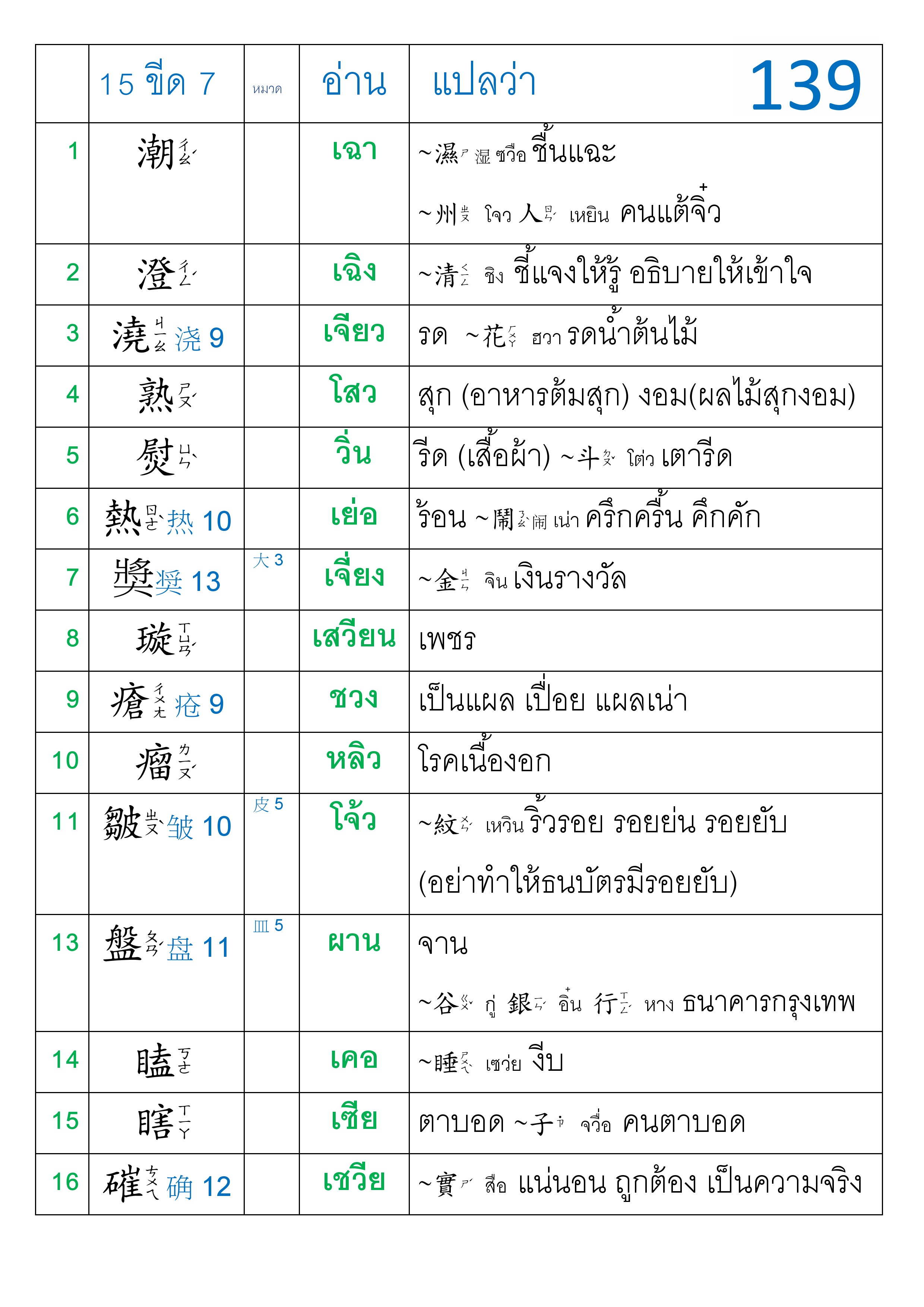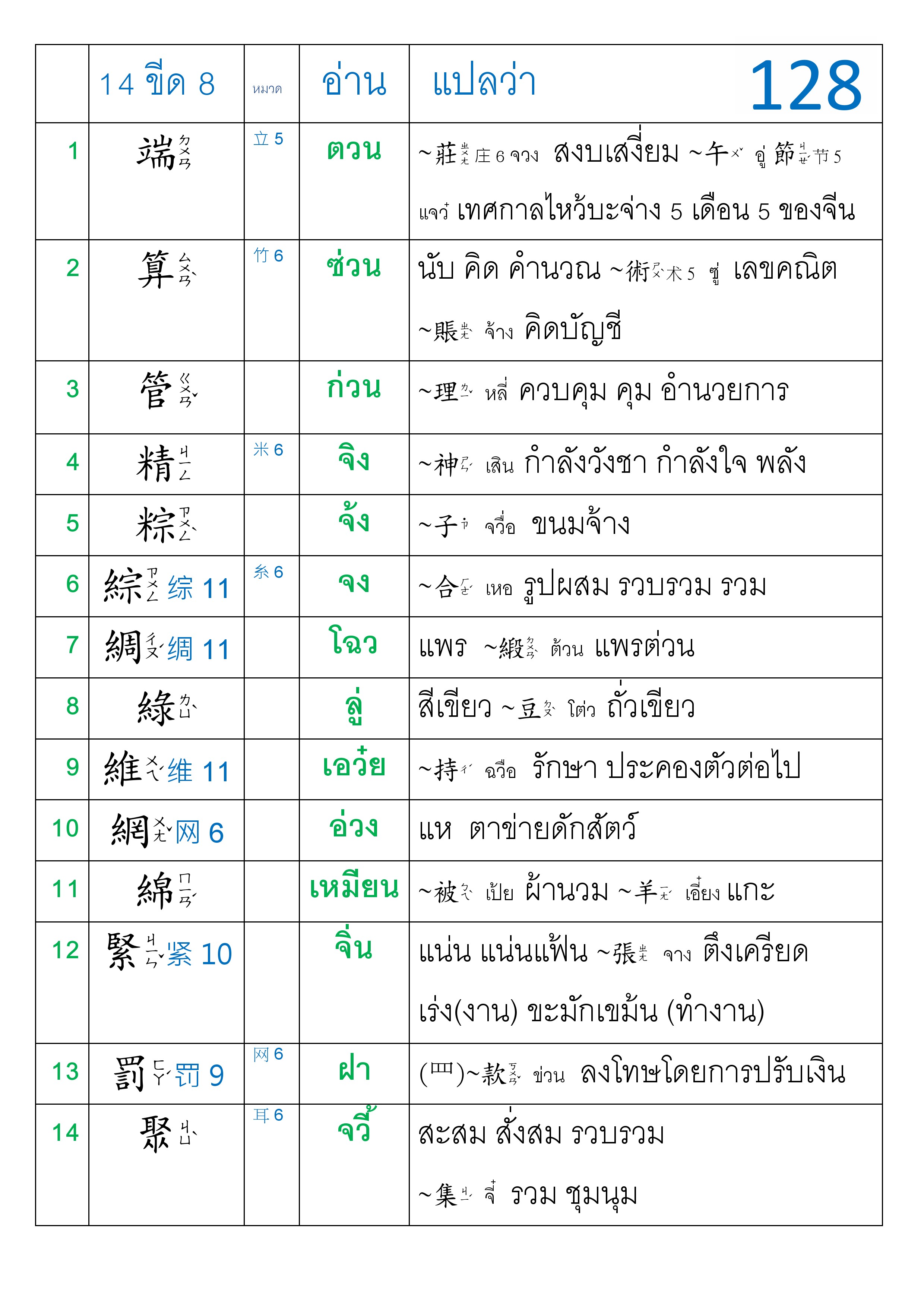 อักษรจีนเต็ม / คำย่อ - จำนวนขีด พร้อม จู้อิน |