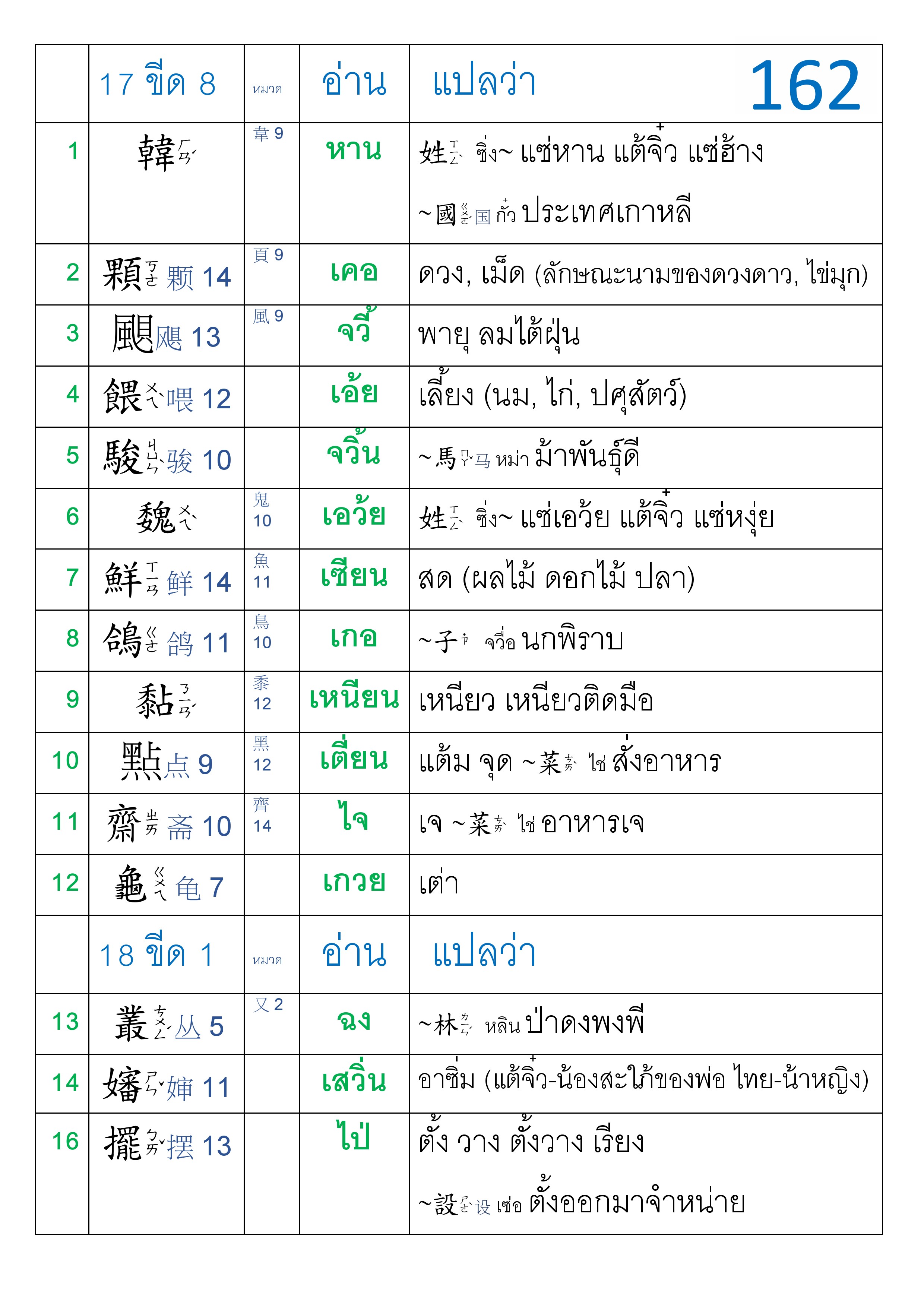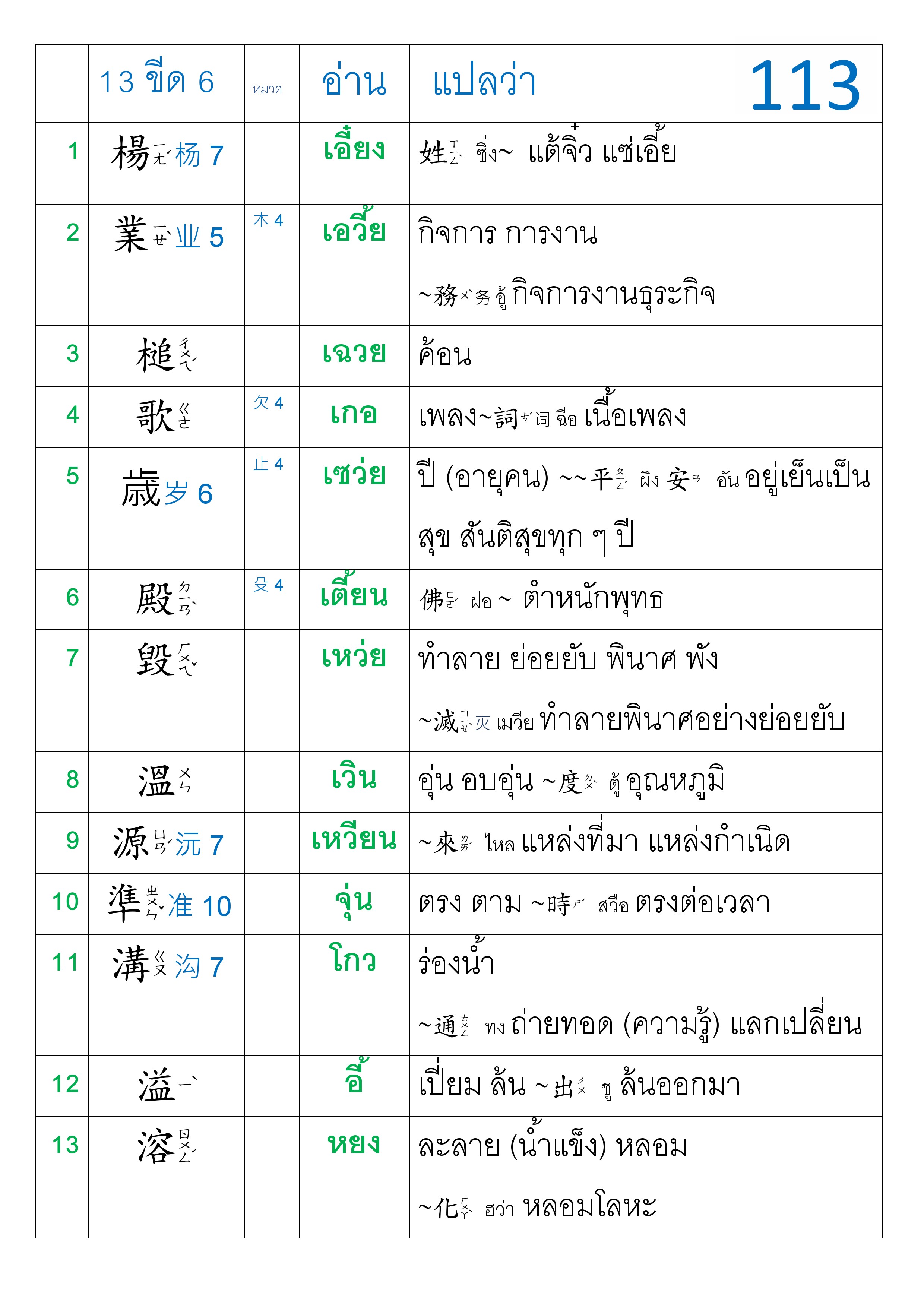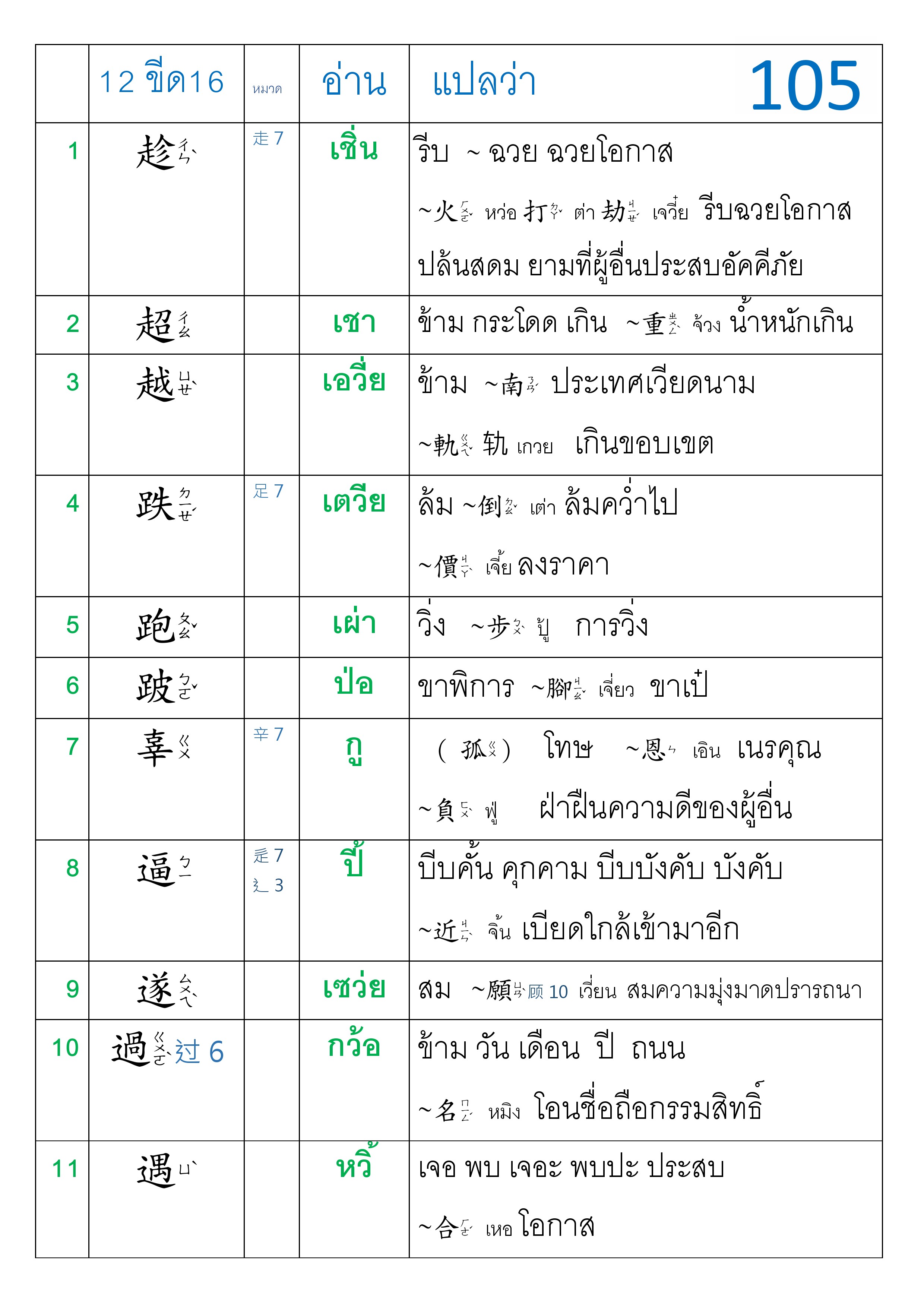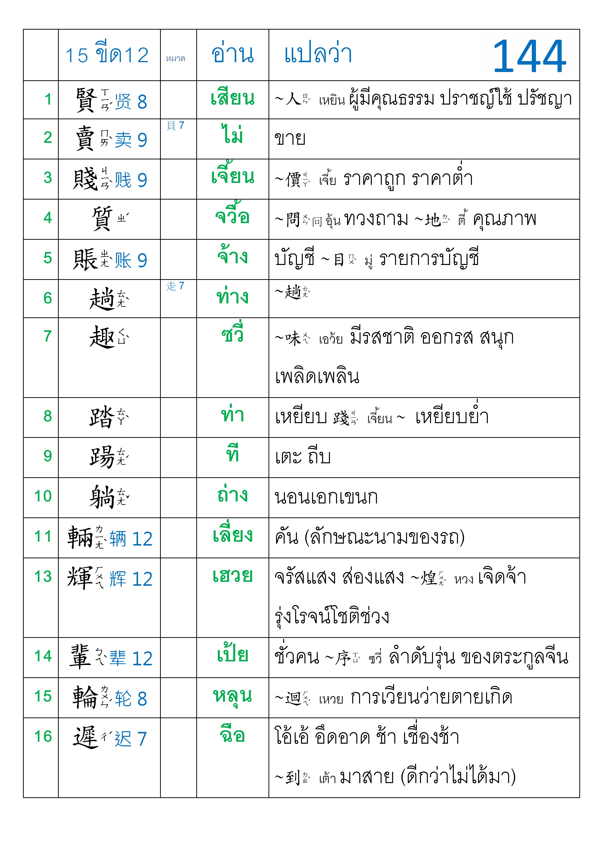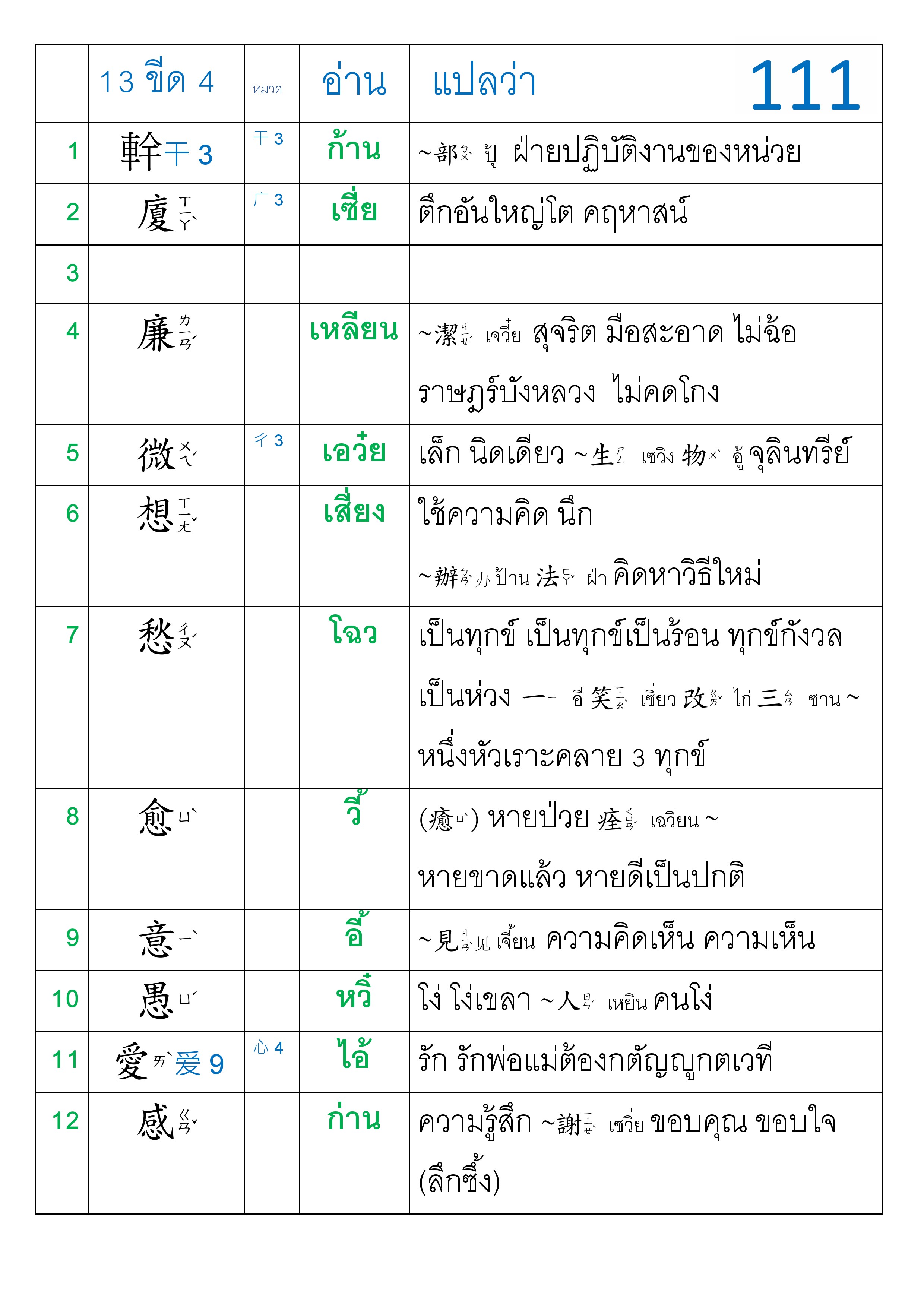 อักษรจีนเต็ม / คำย่อ - จำนวนขีด พร้อม จู้อิน |