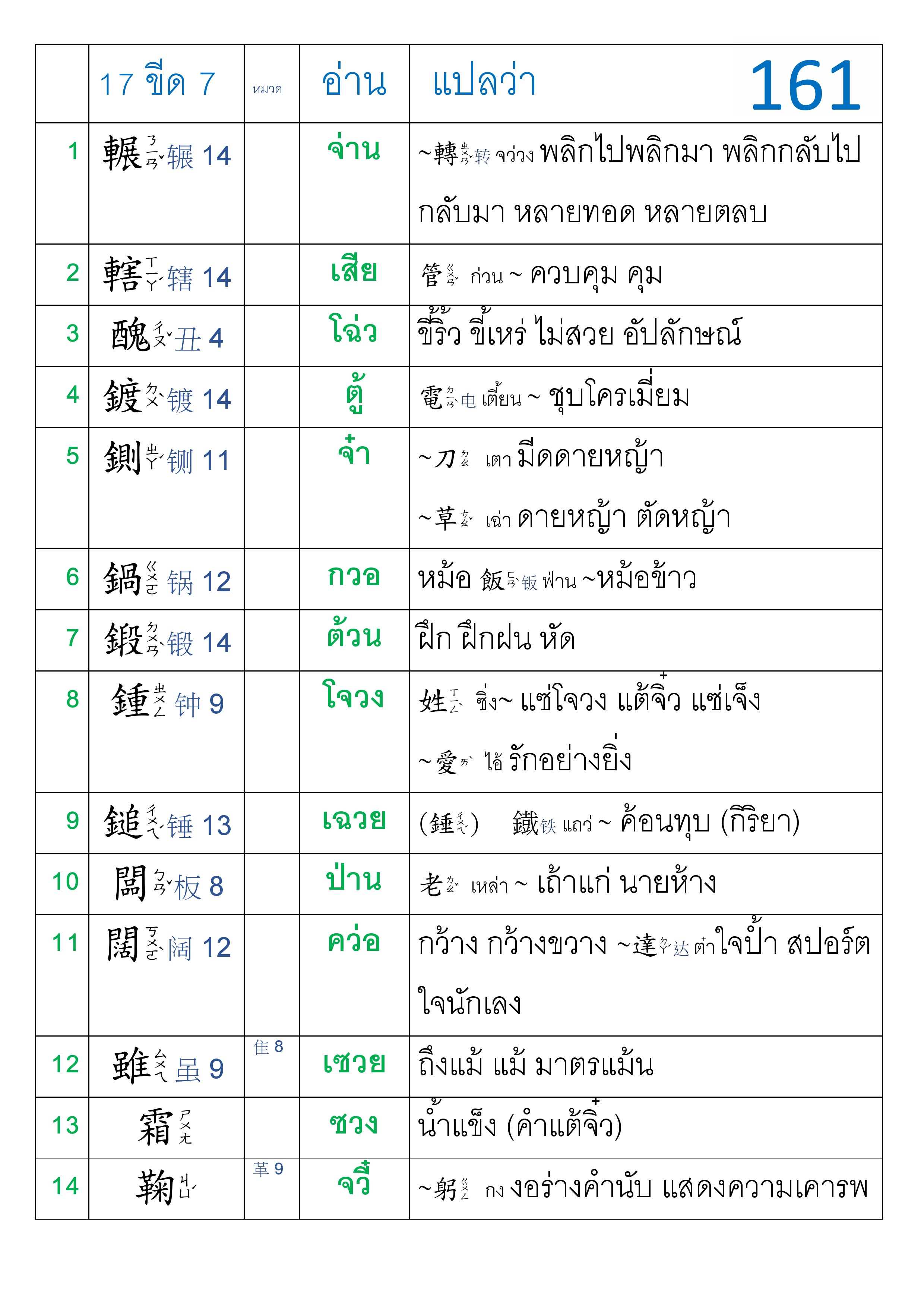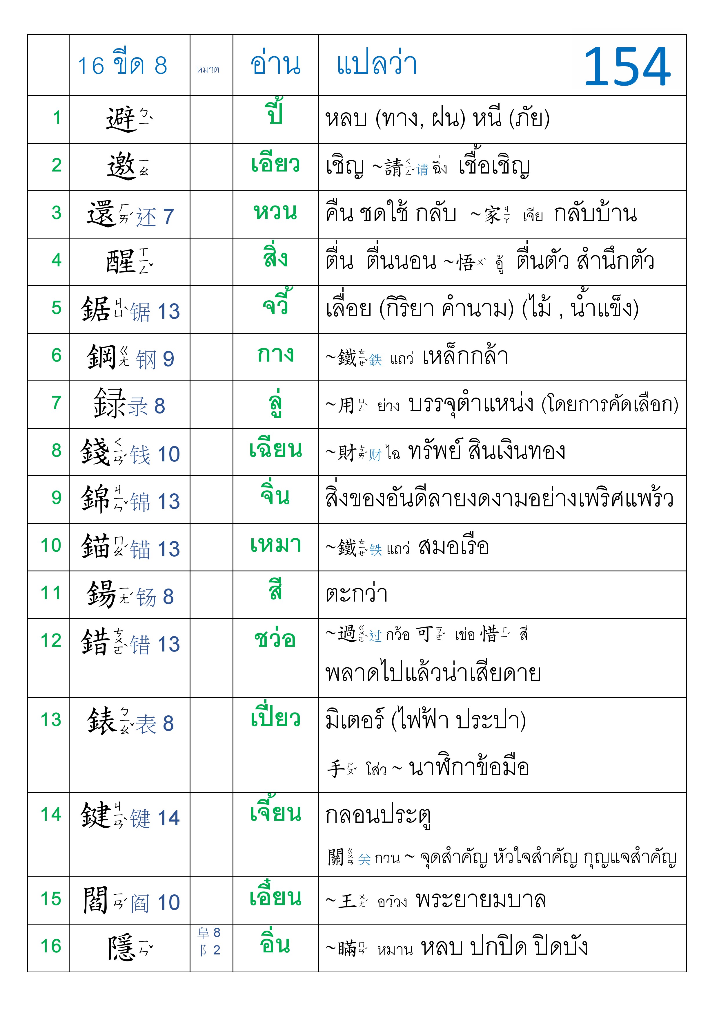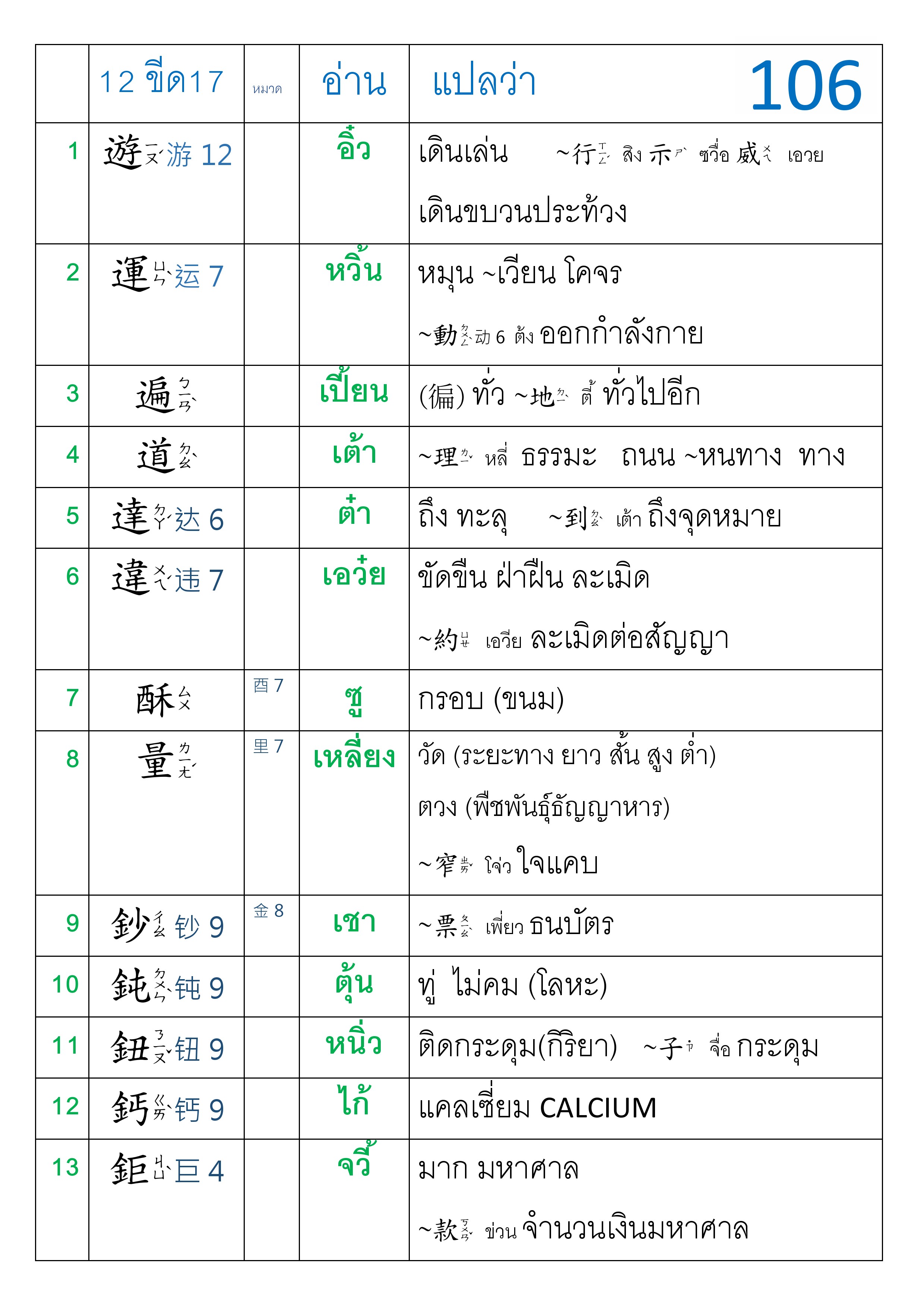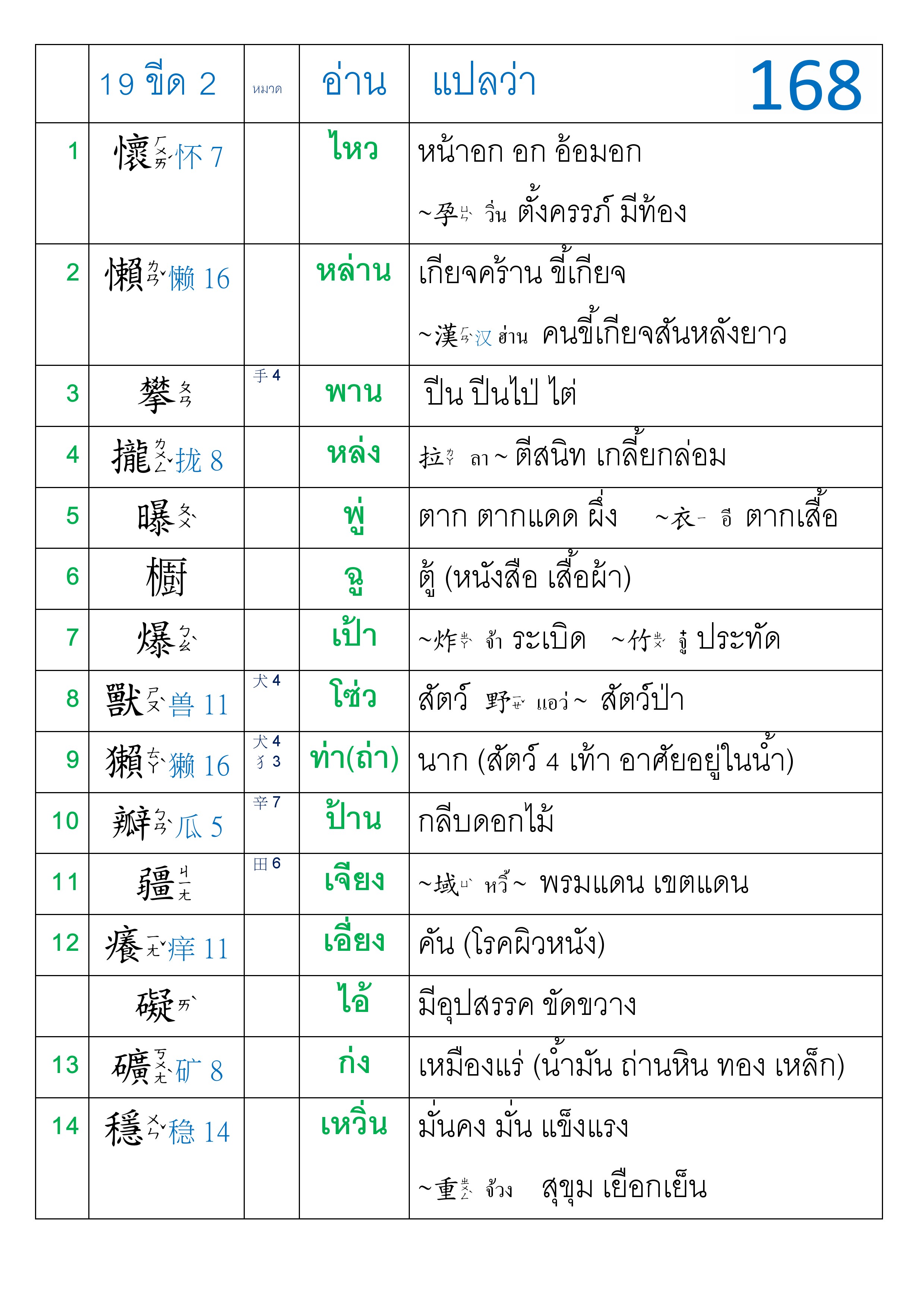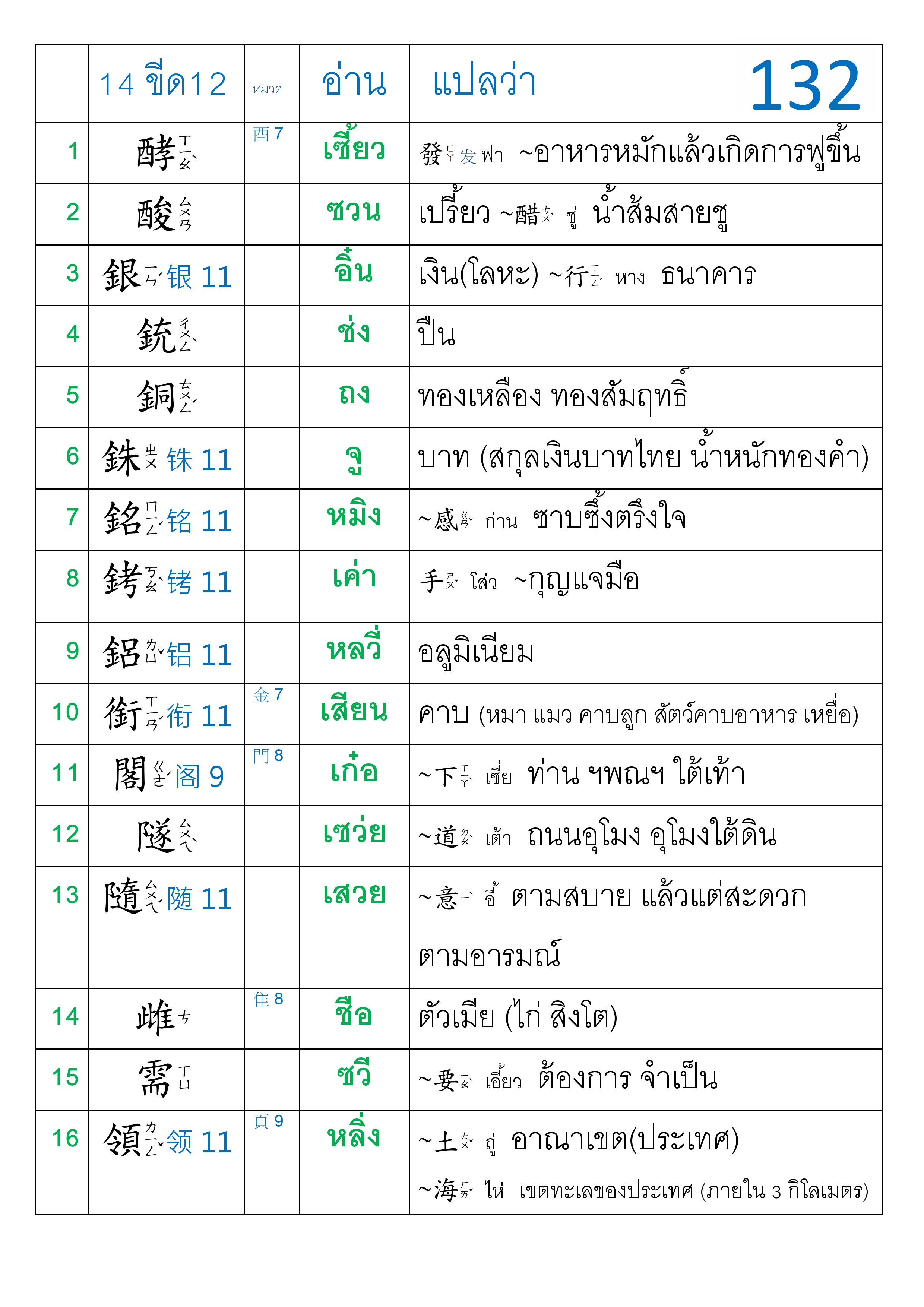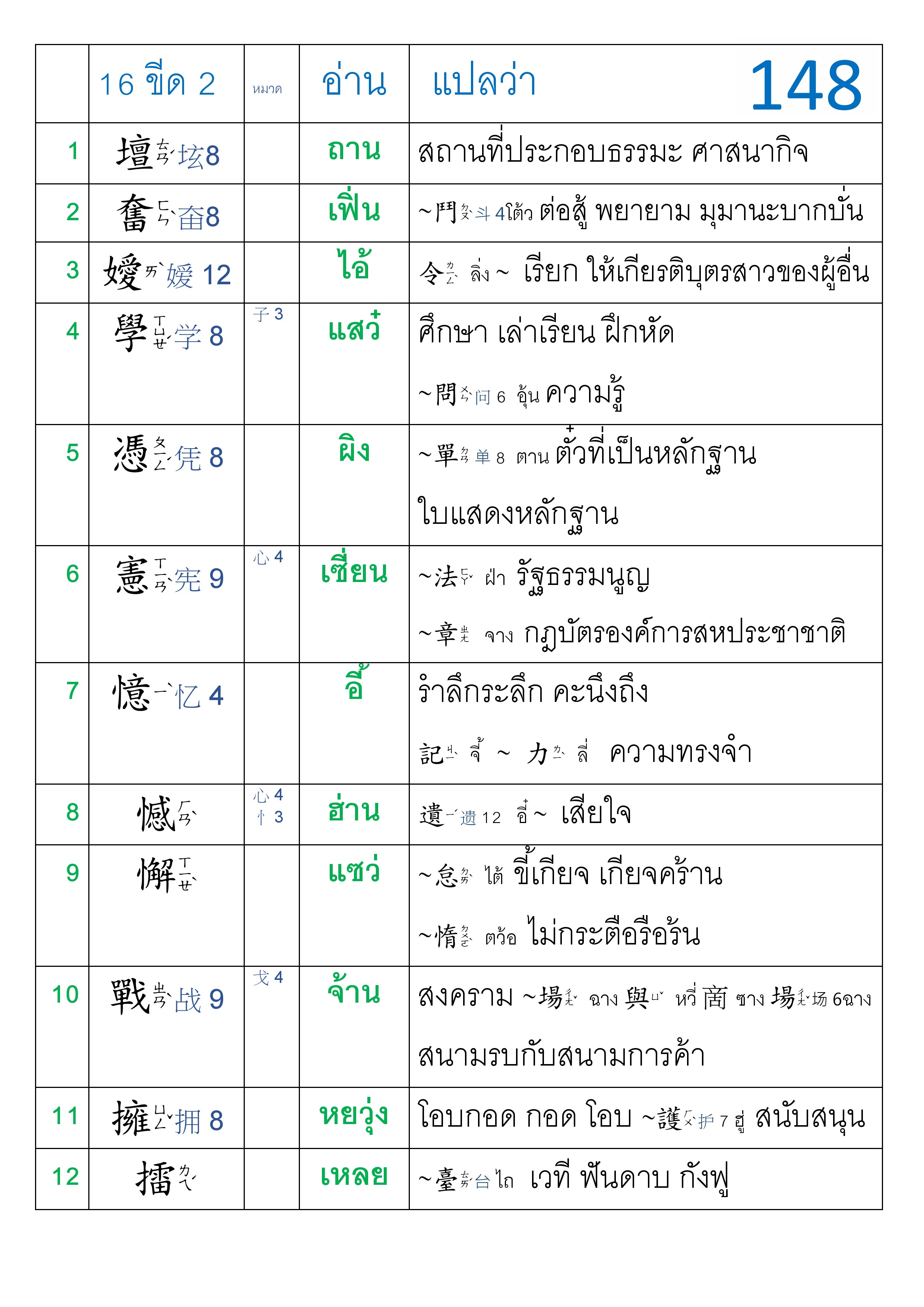 อักษรจีนเต็ม / คำย่อ - จำนวนขีด พร้อม จู้อิน |