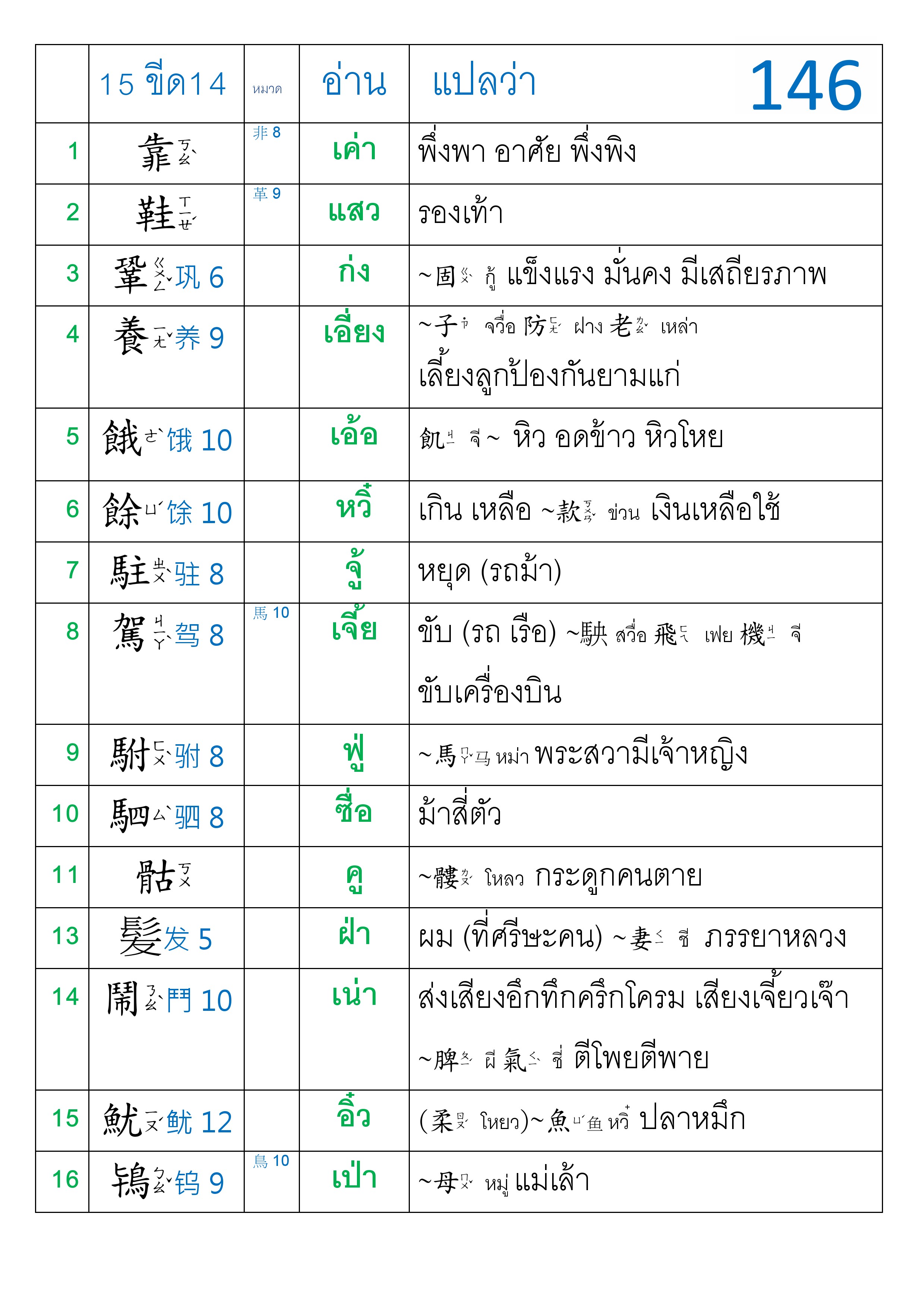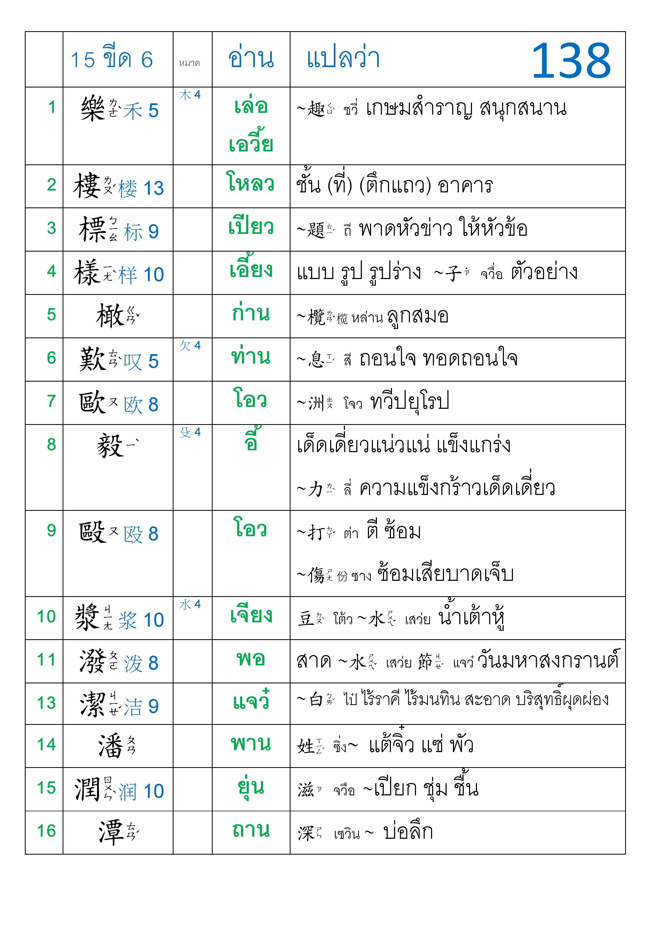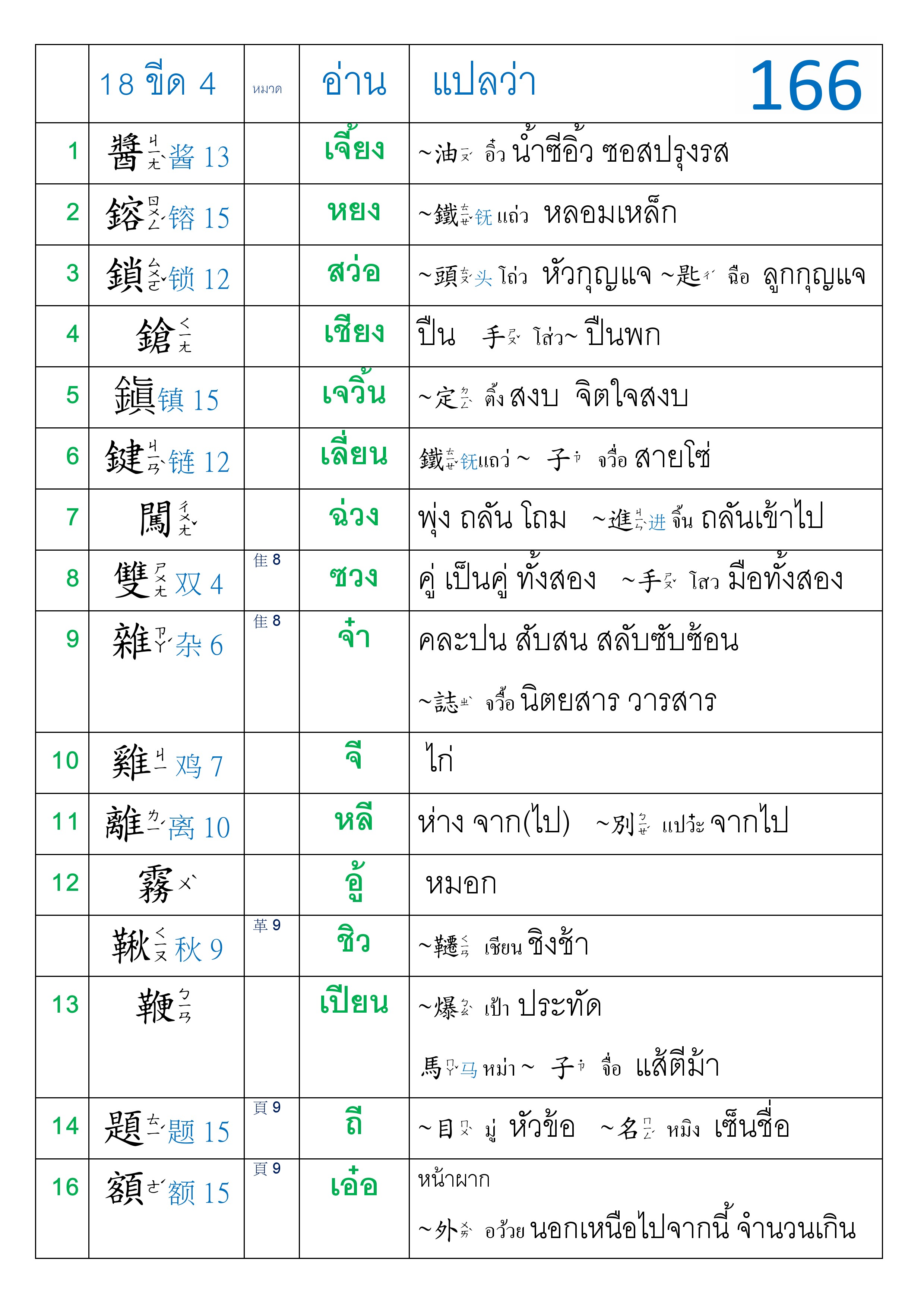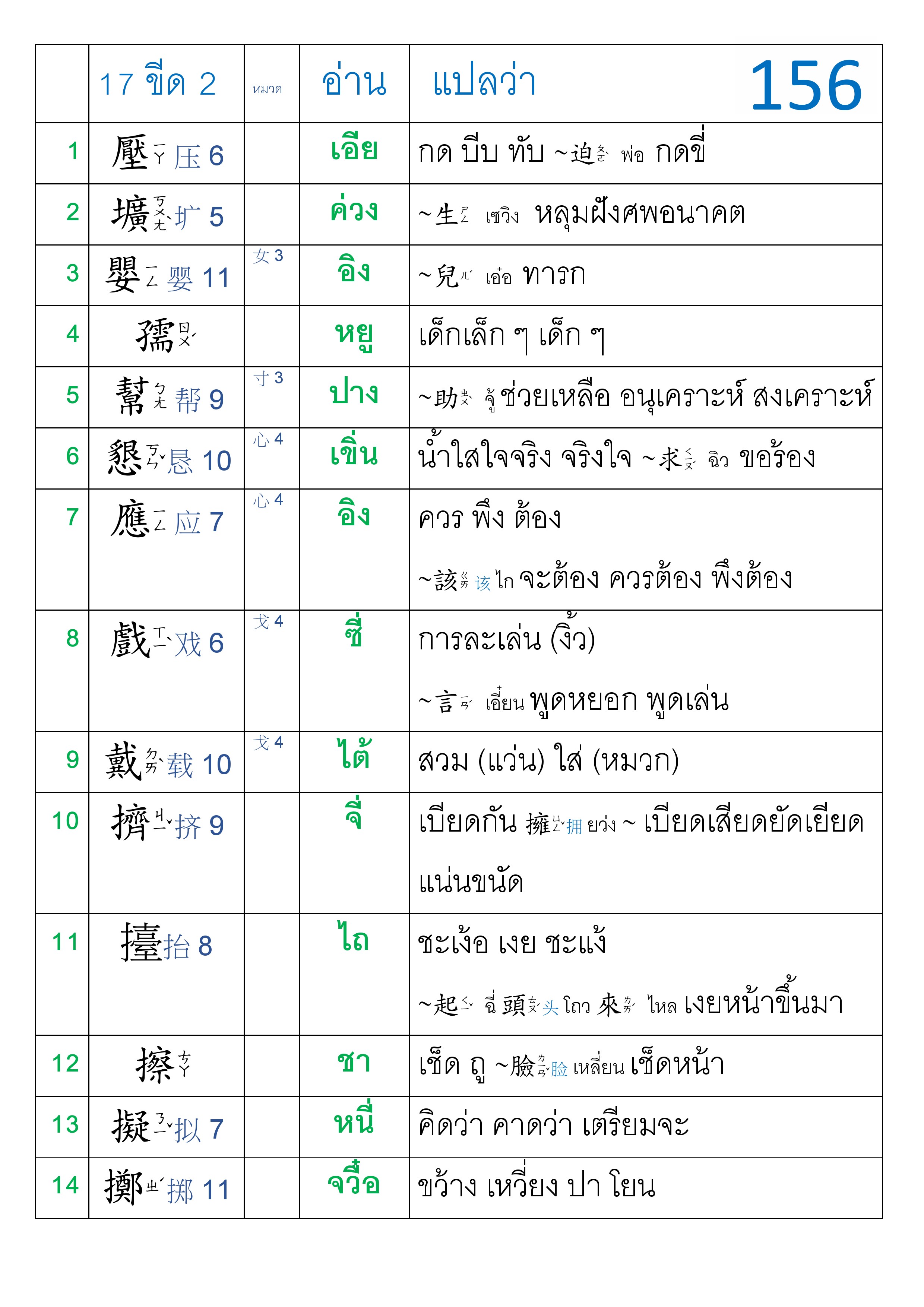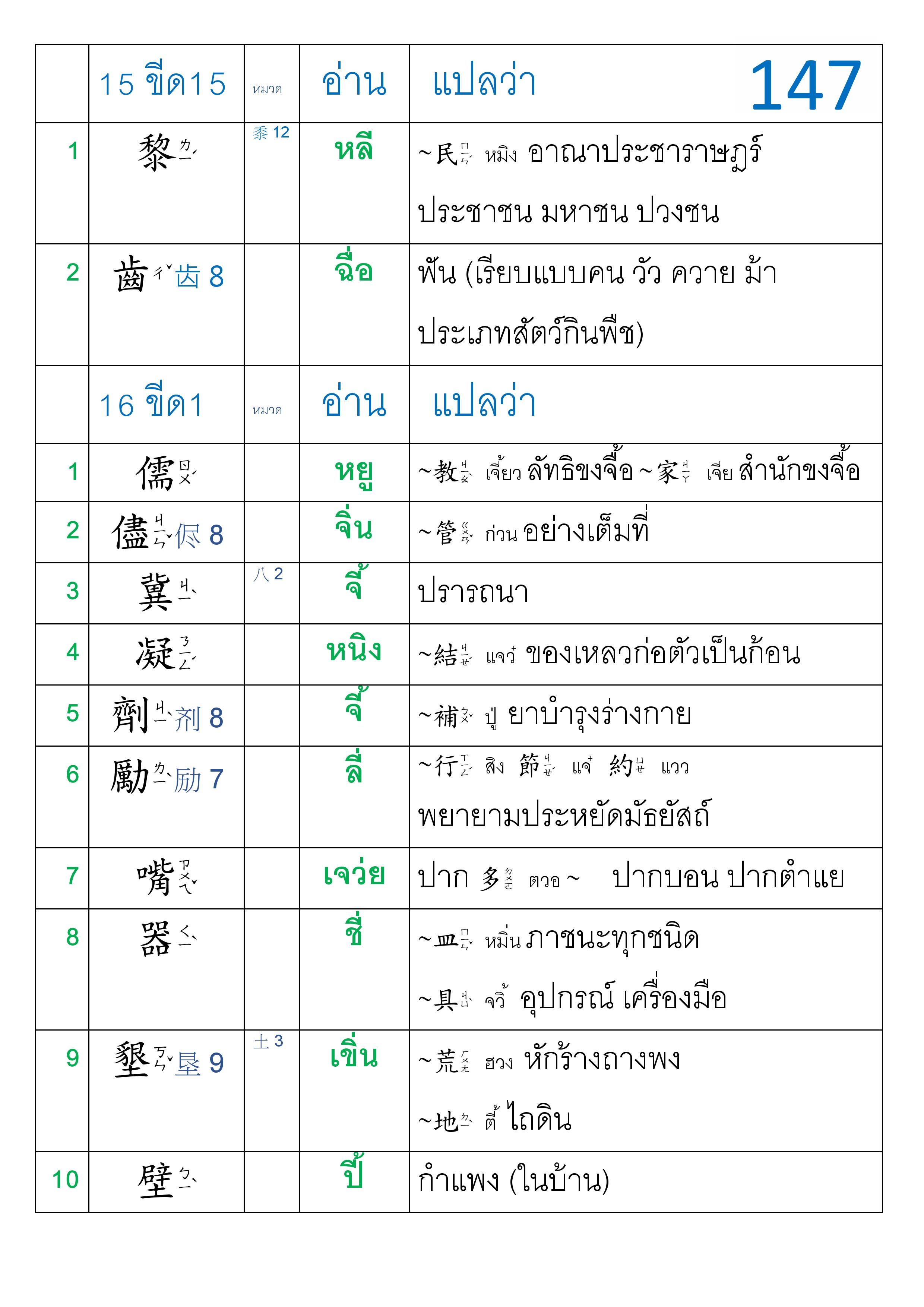 อักษรจีนเต็ม / คำย่อ - จำนวนขีด พร้อม จู้อิน |