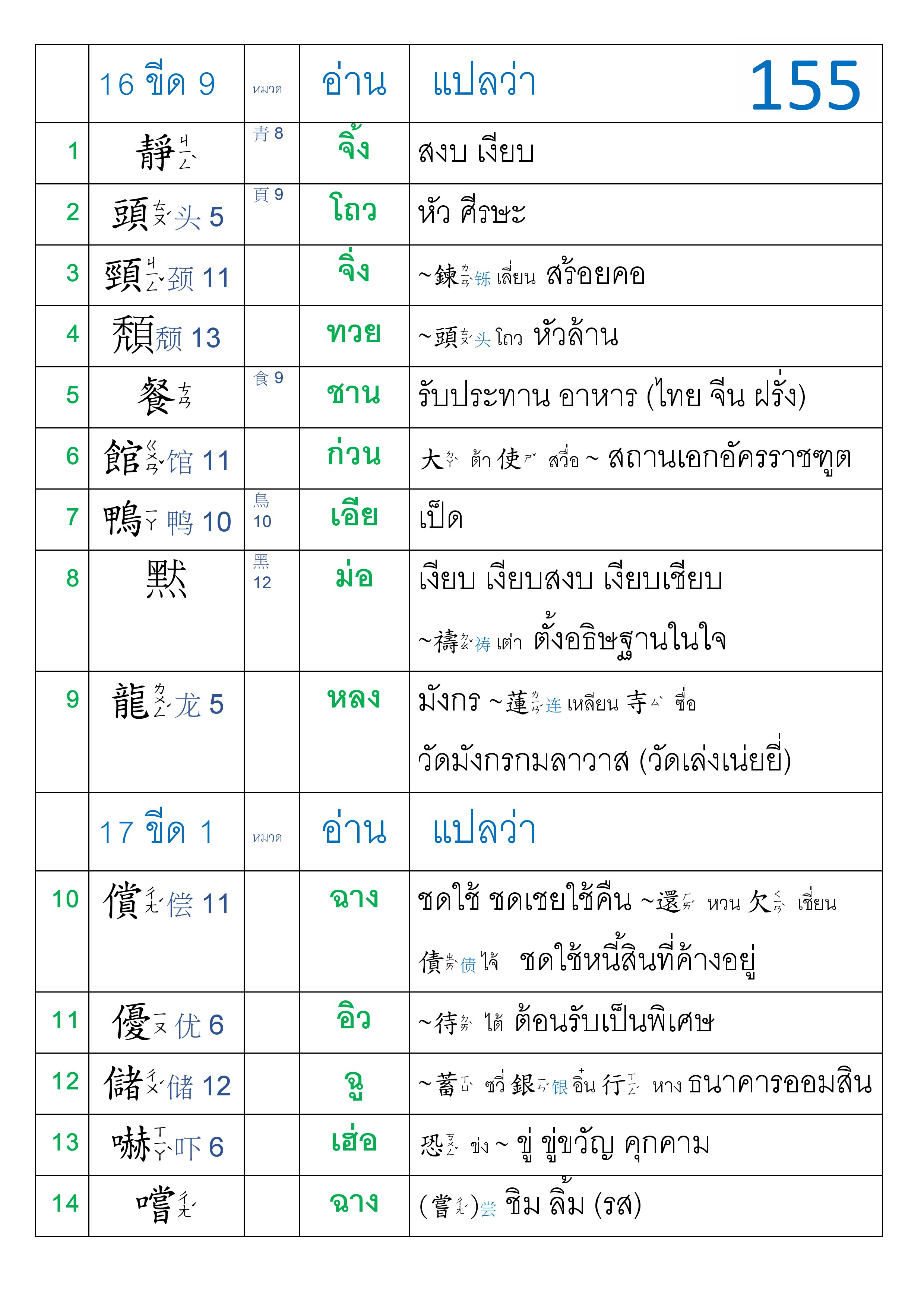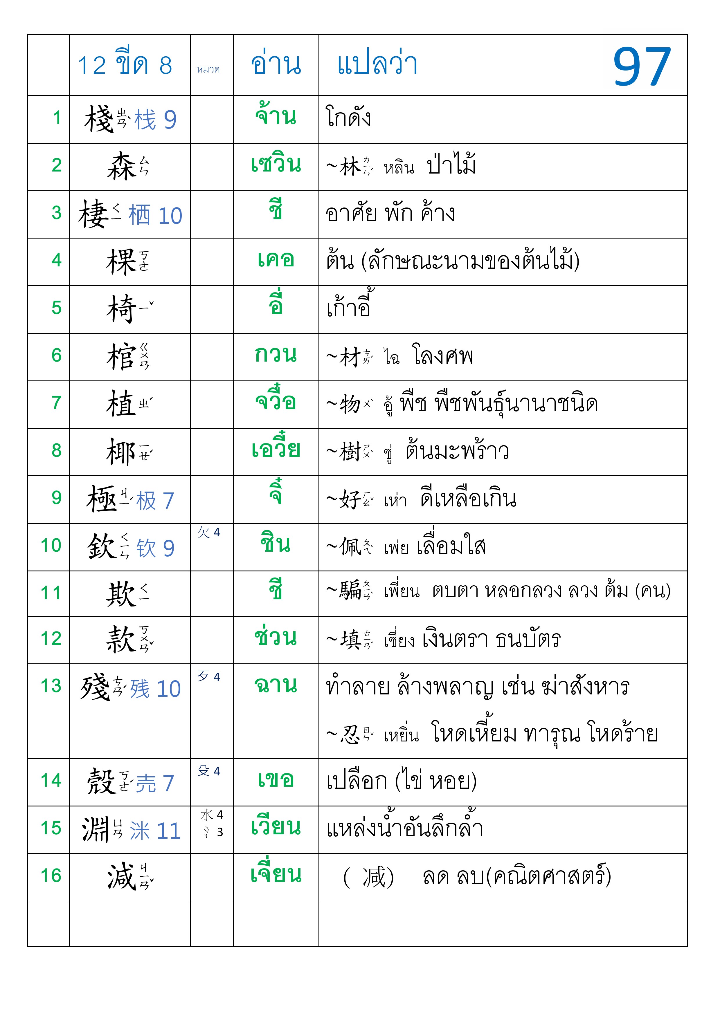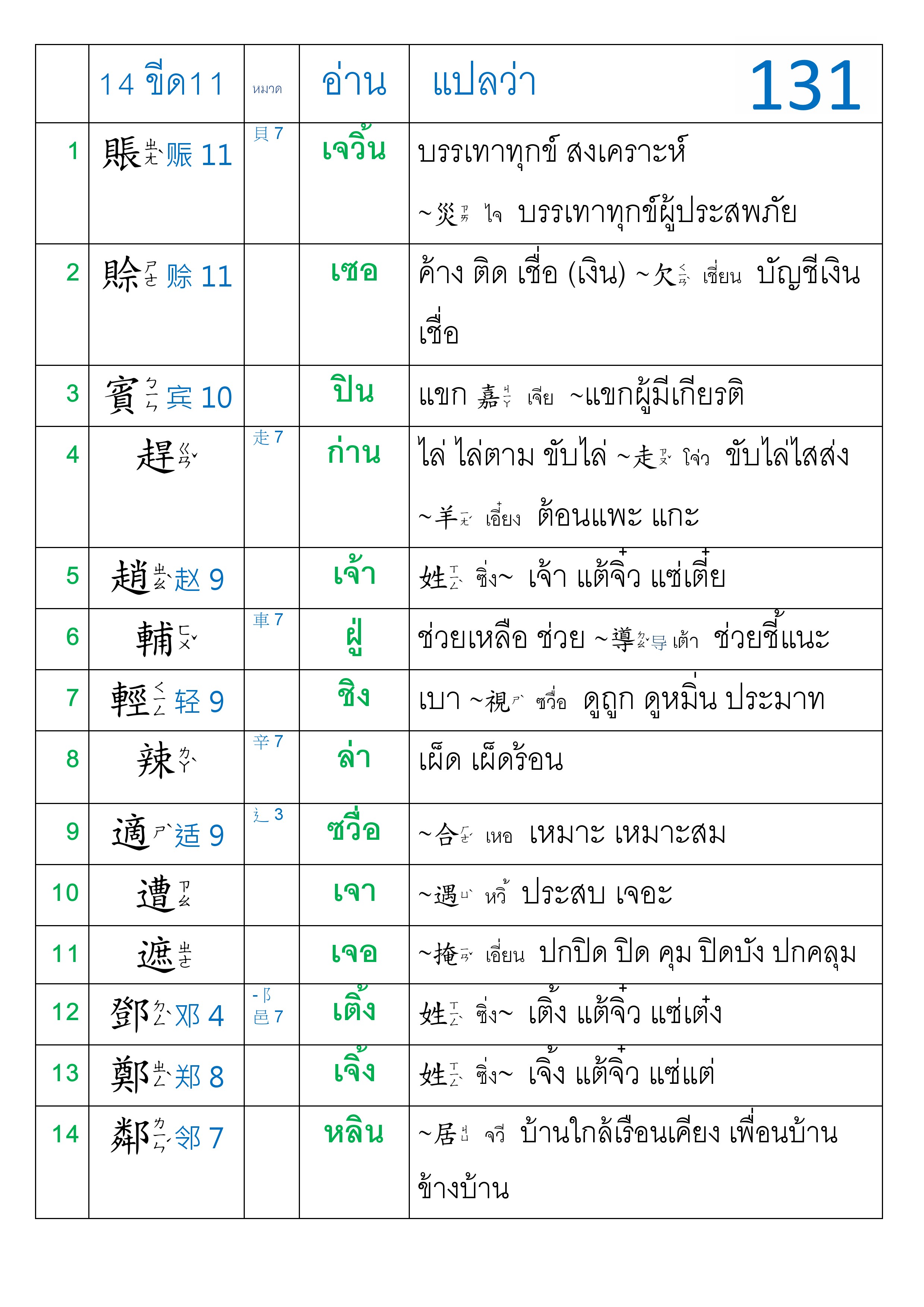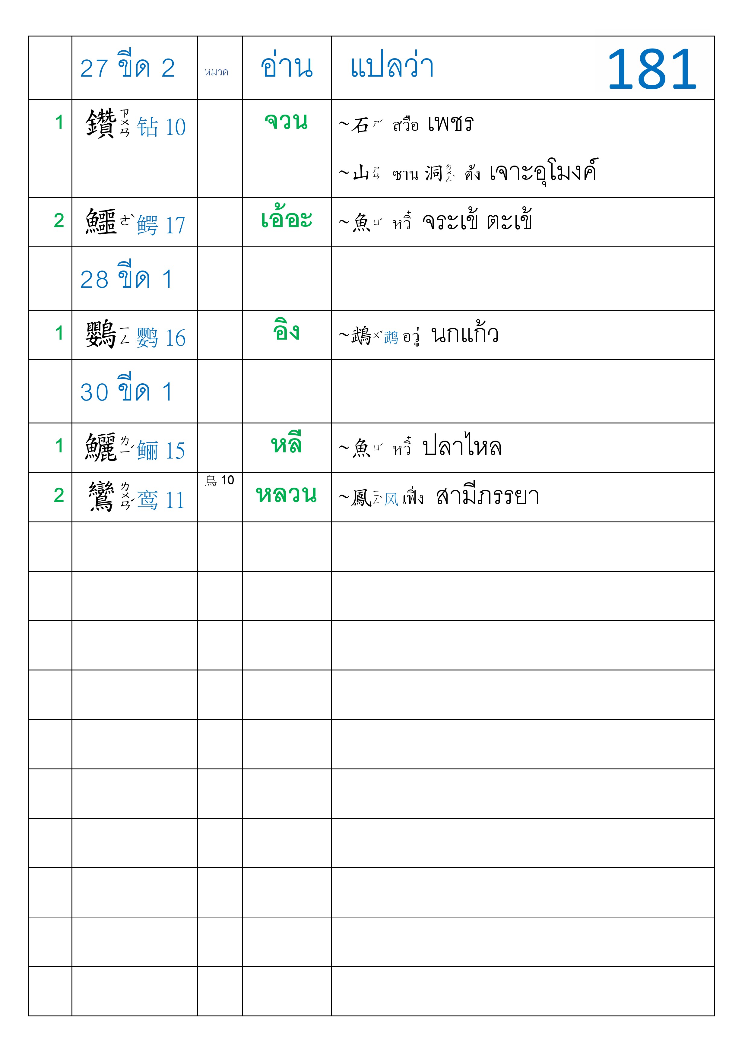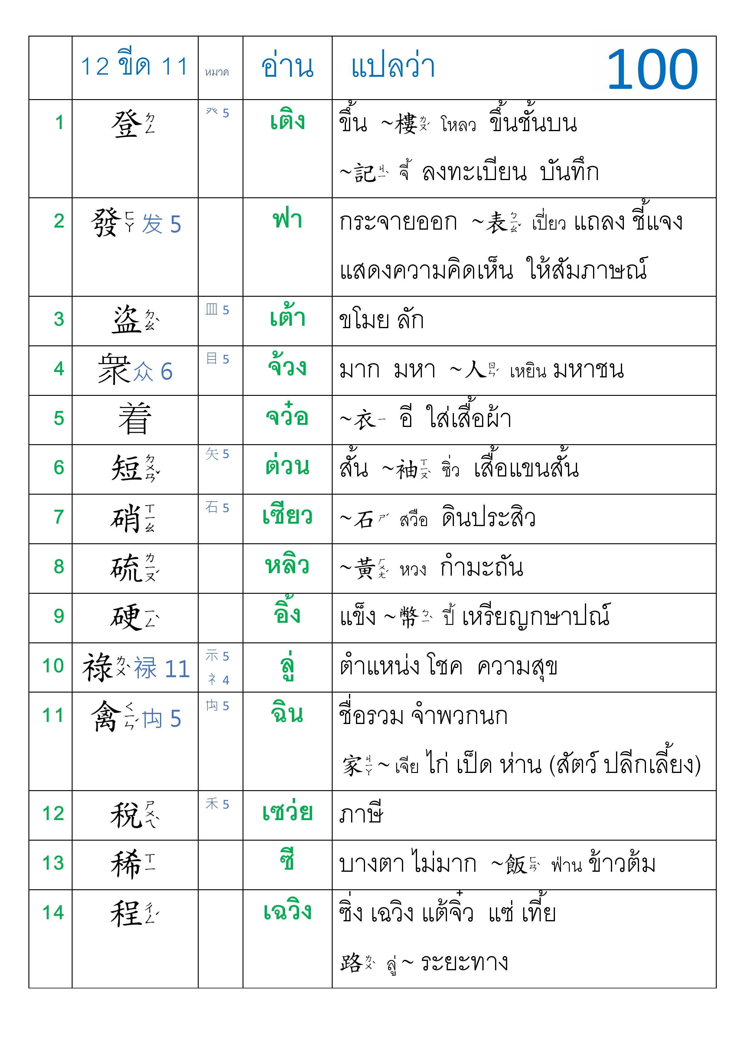 อักษรจีนเต็ม / คำย่อ - จำนวนขีด พร้อม จู้อิน |