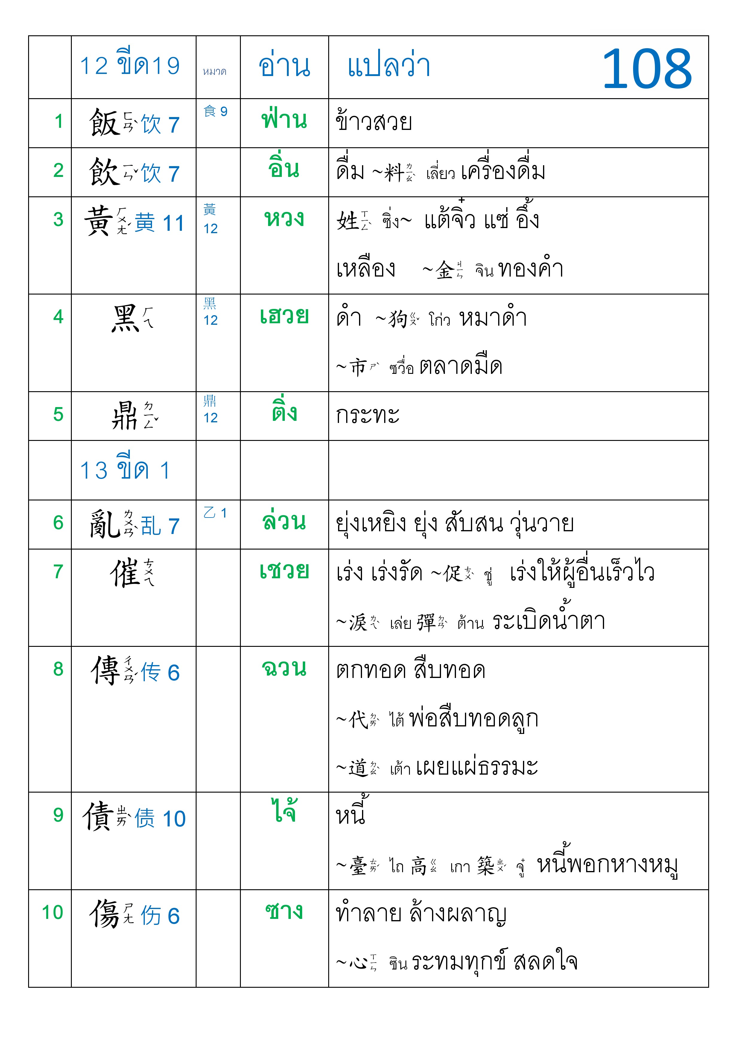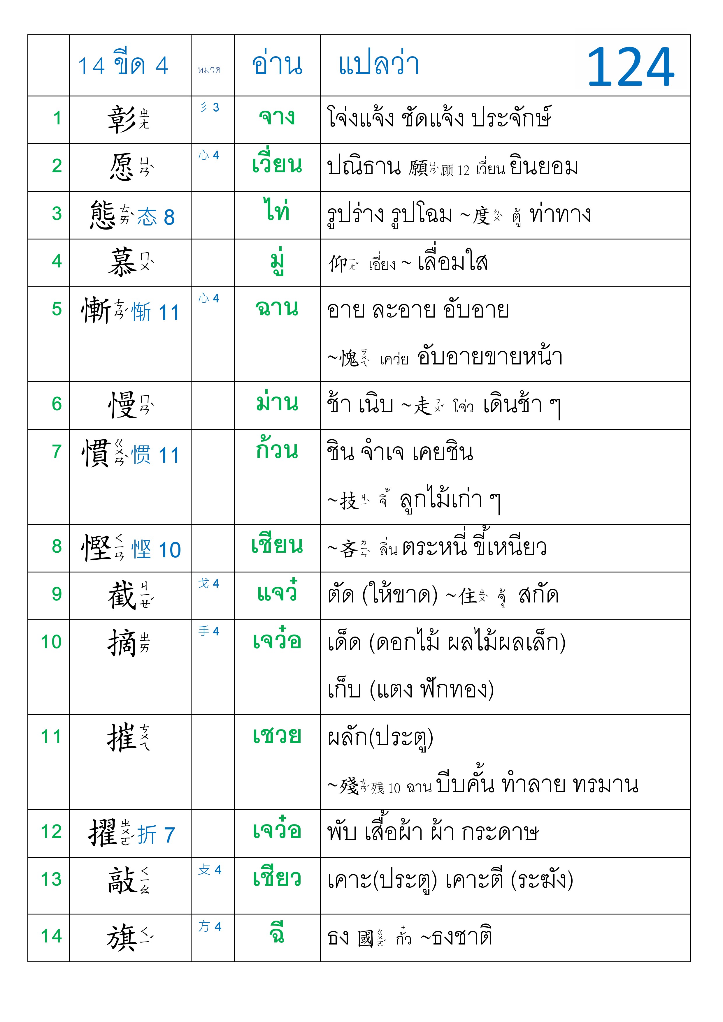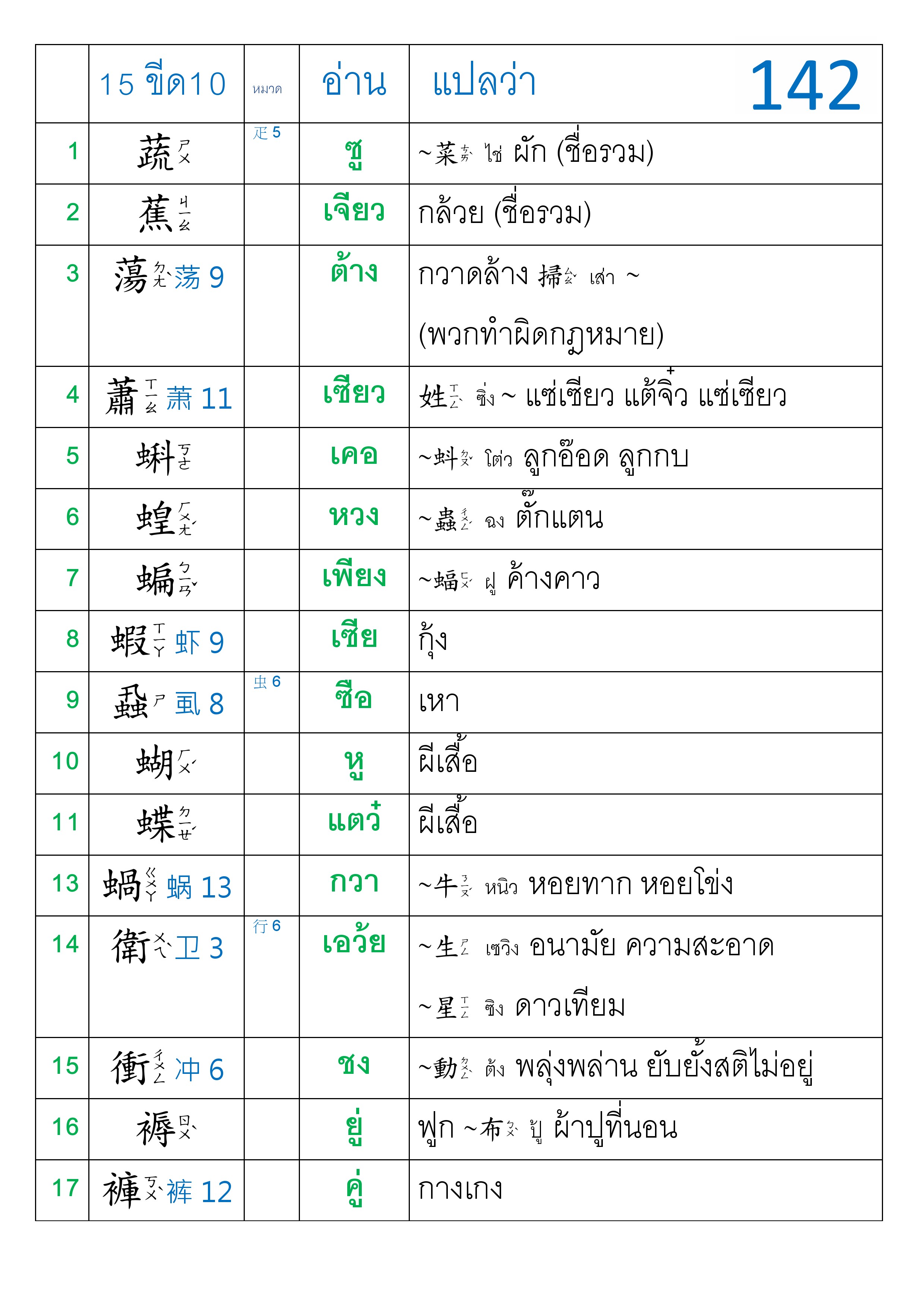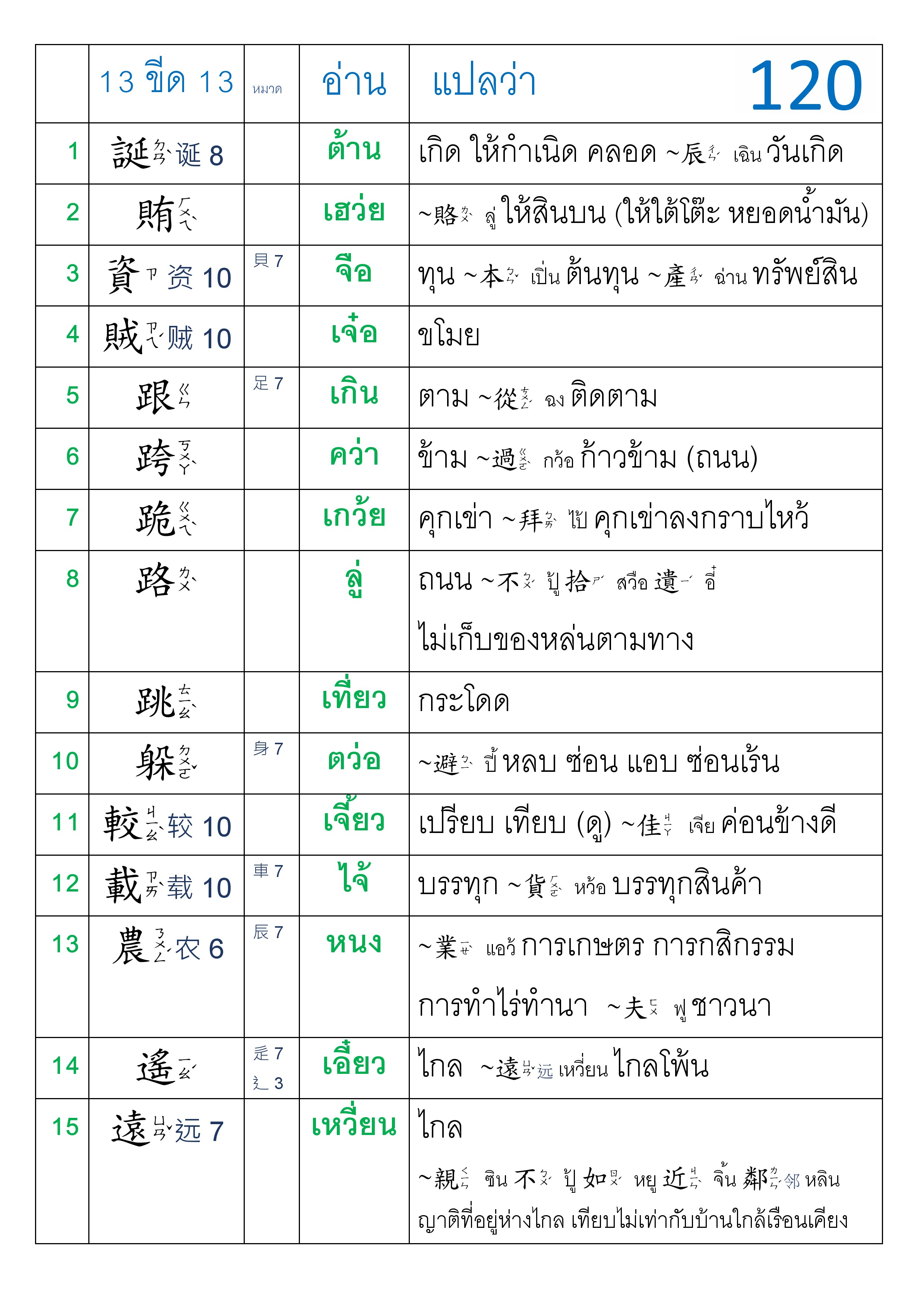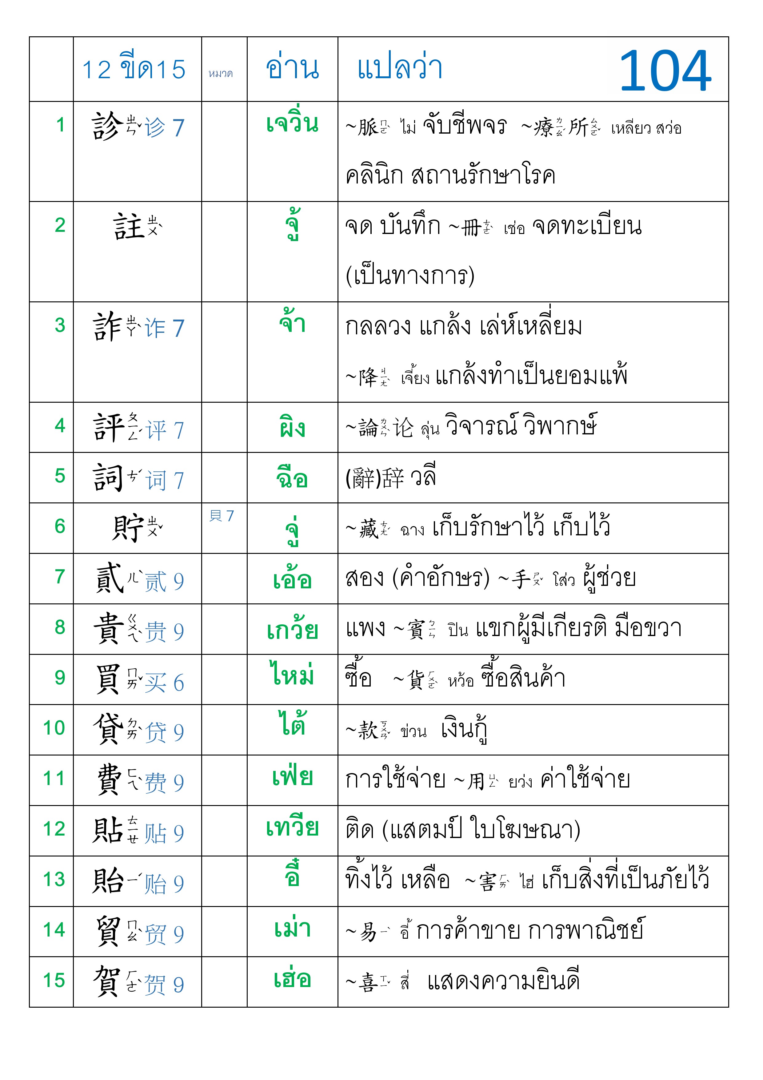 อักษรจีนเต็ม / คำย่อ - จำนวนขีด พร้อม จู้อิน |