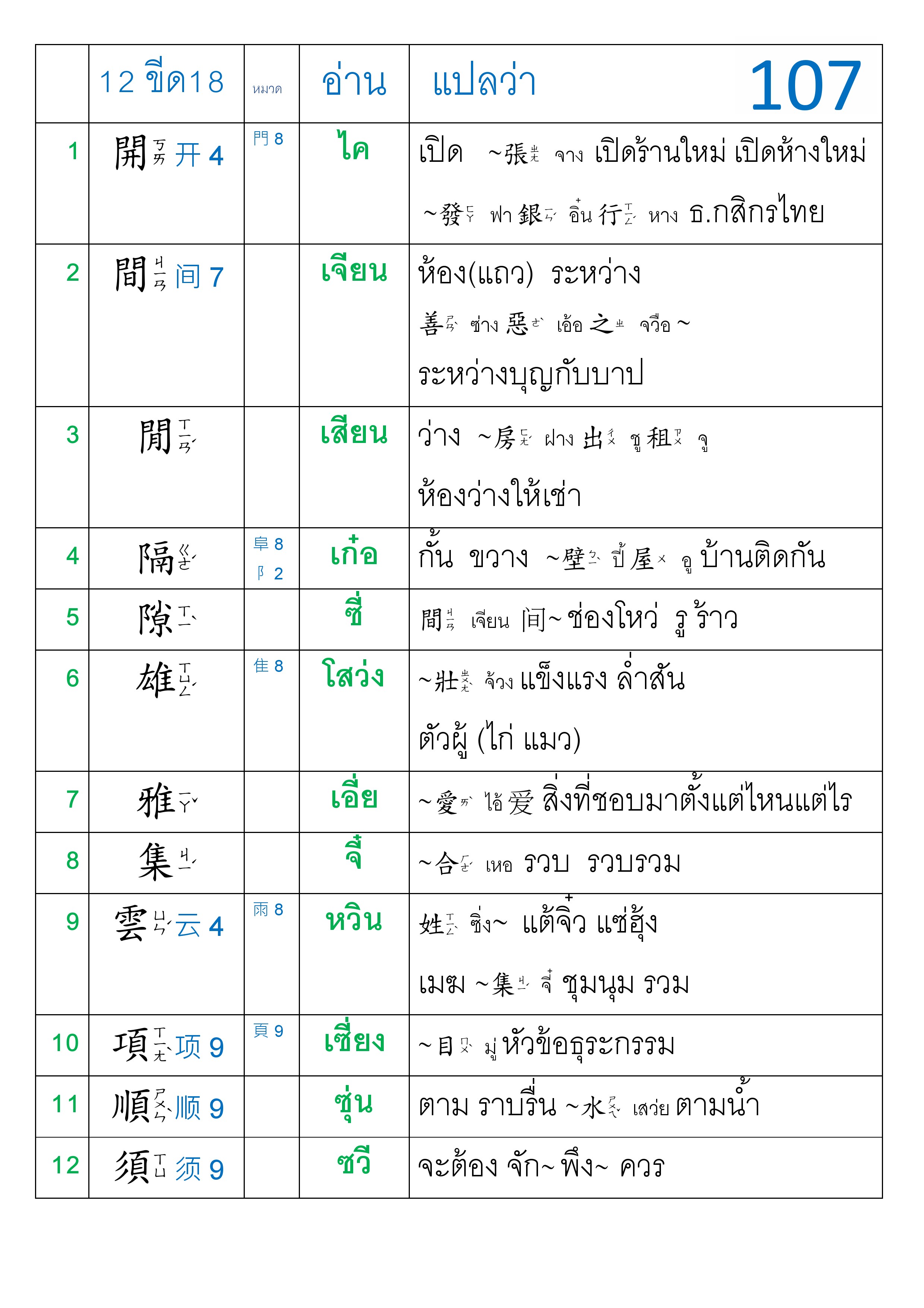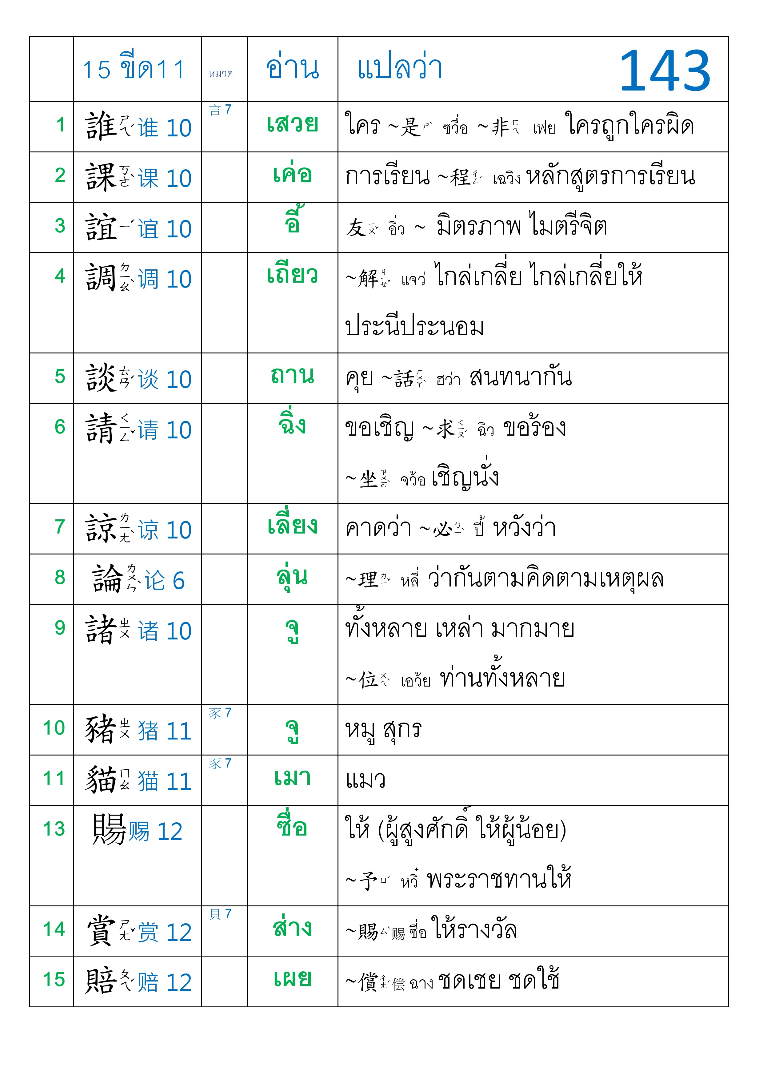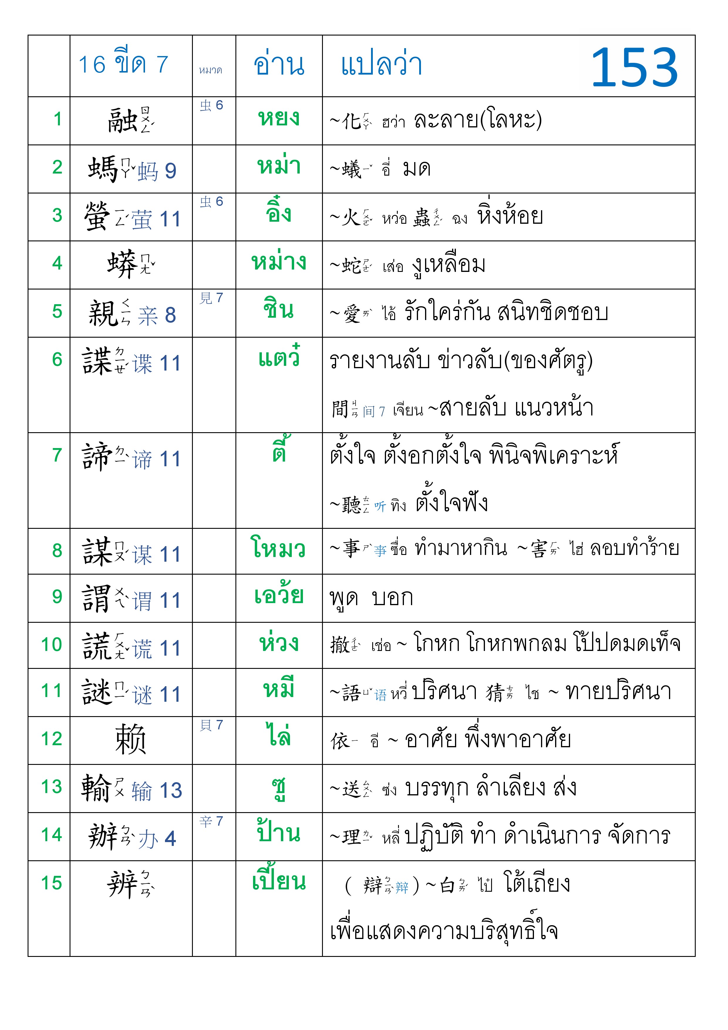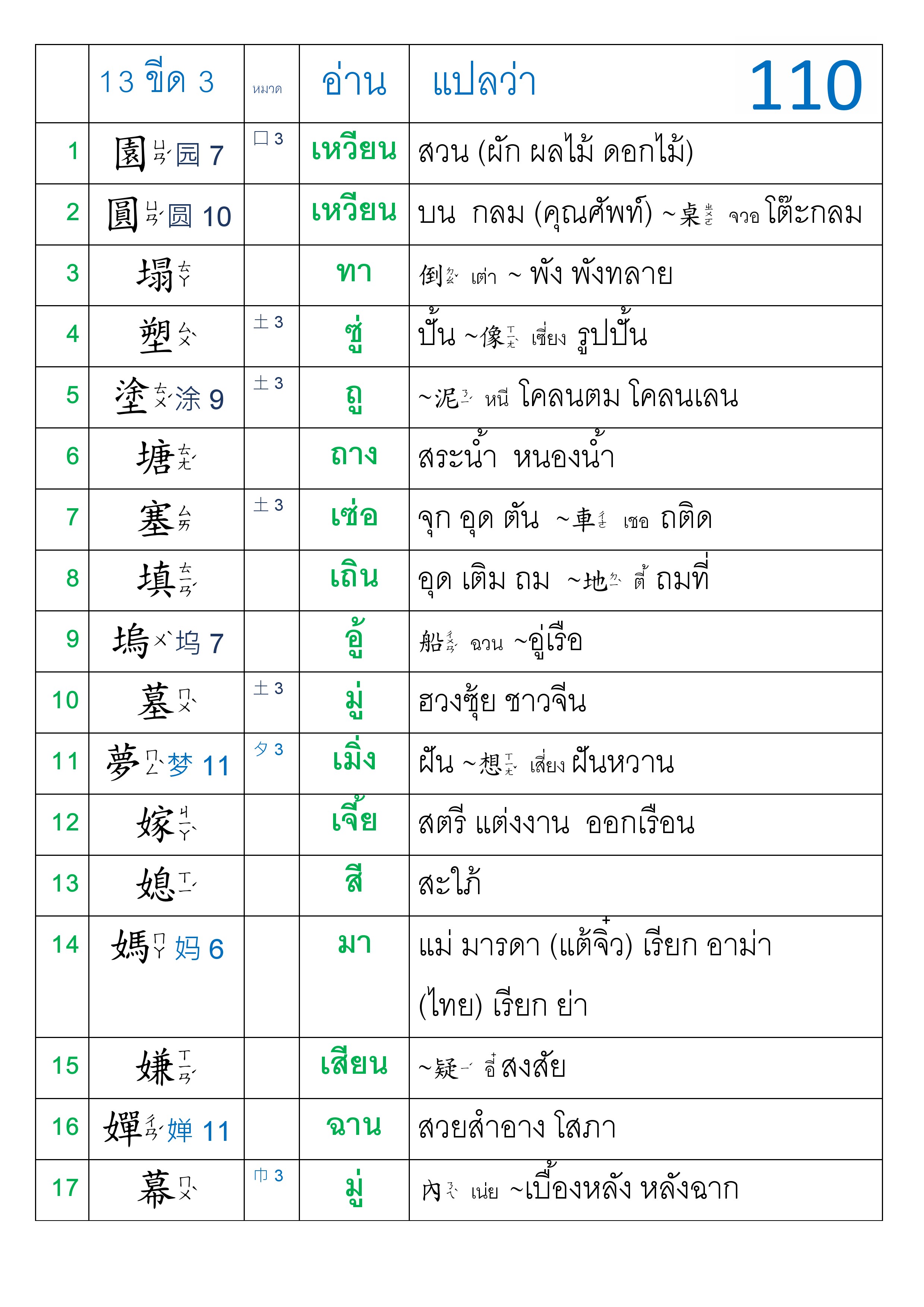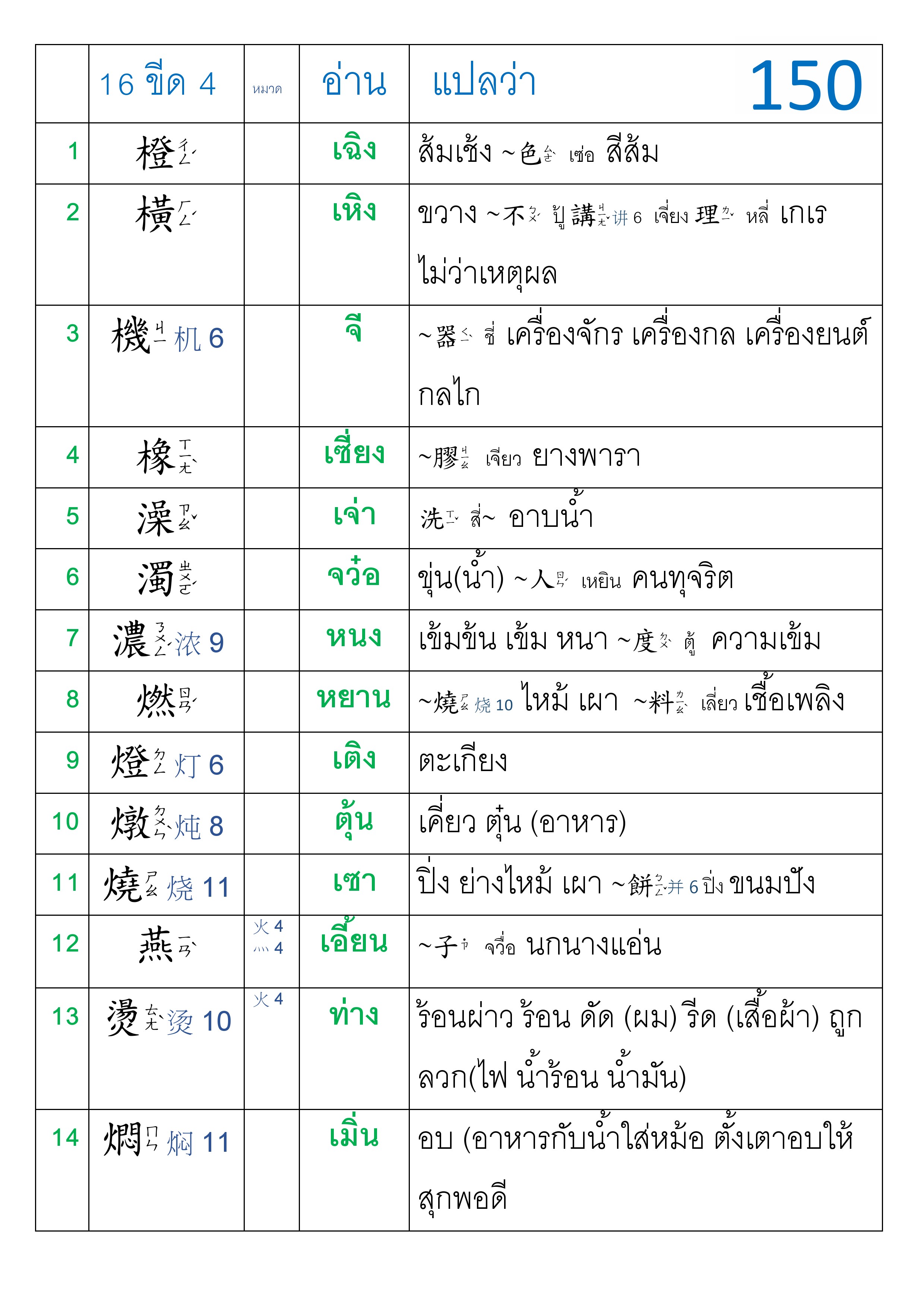 อักษรจีนเต็ม / คำย่อ - จำนวนขีด พร้อม จู้อิน |