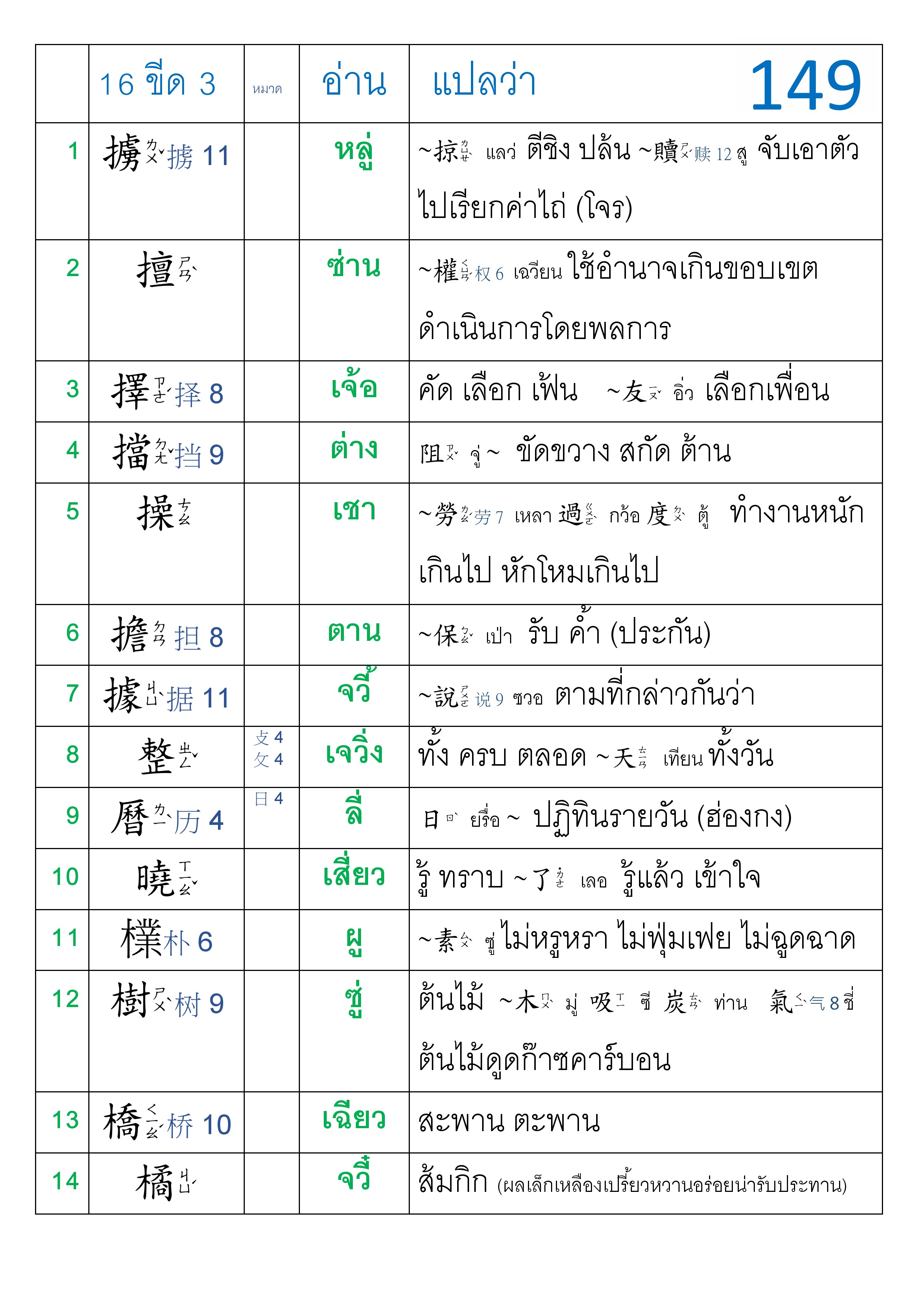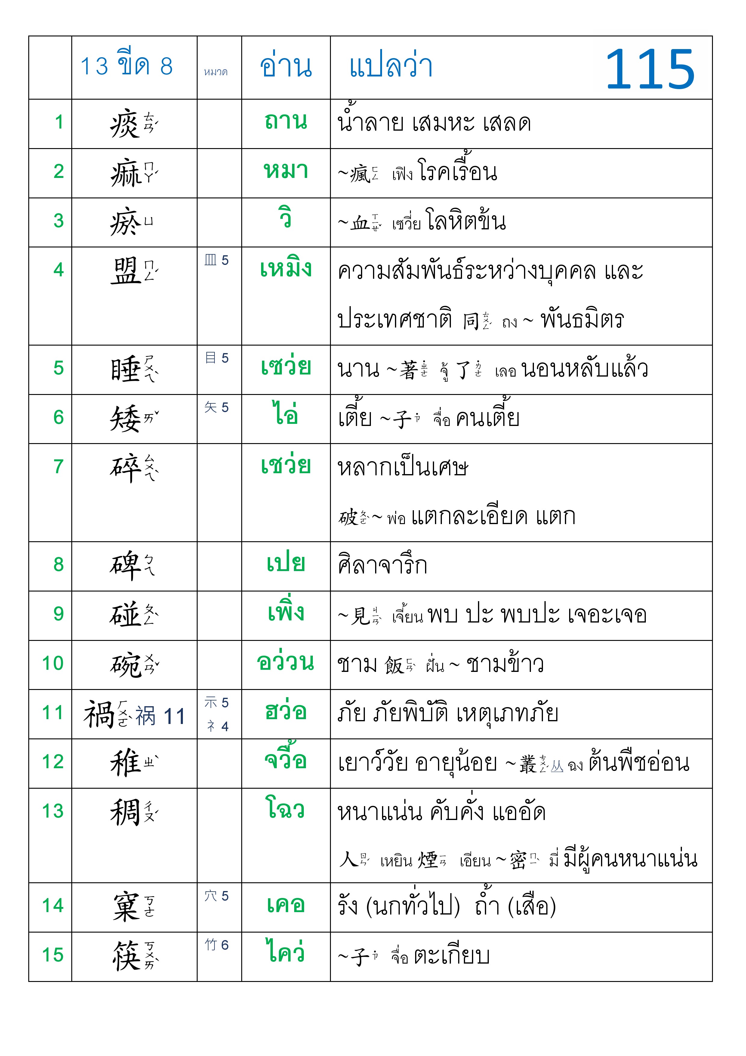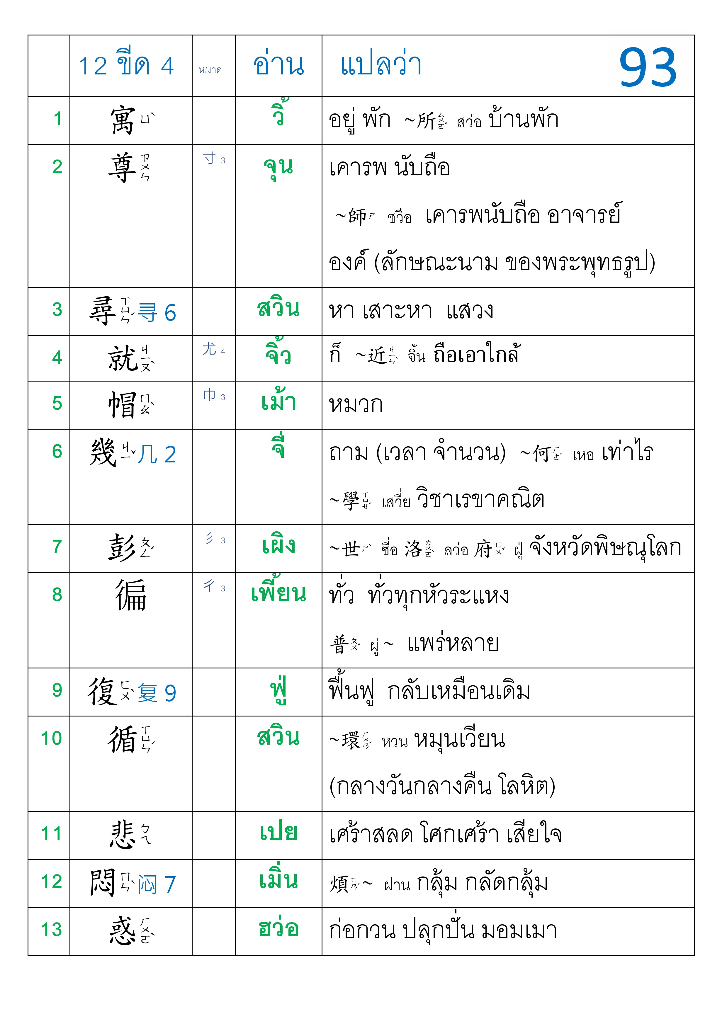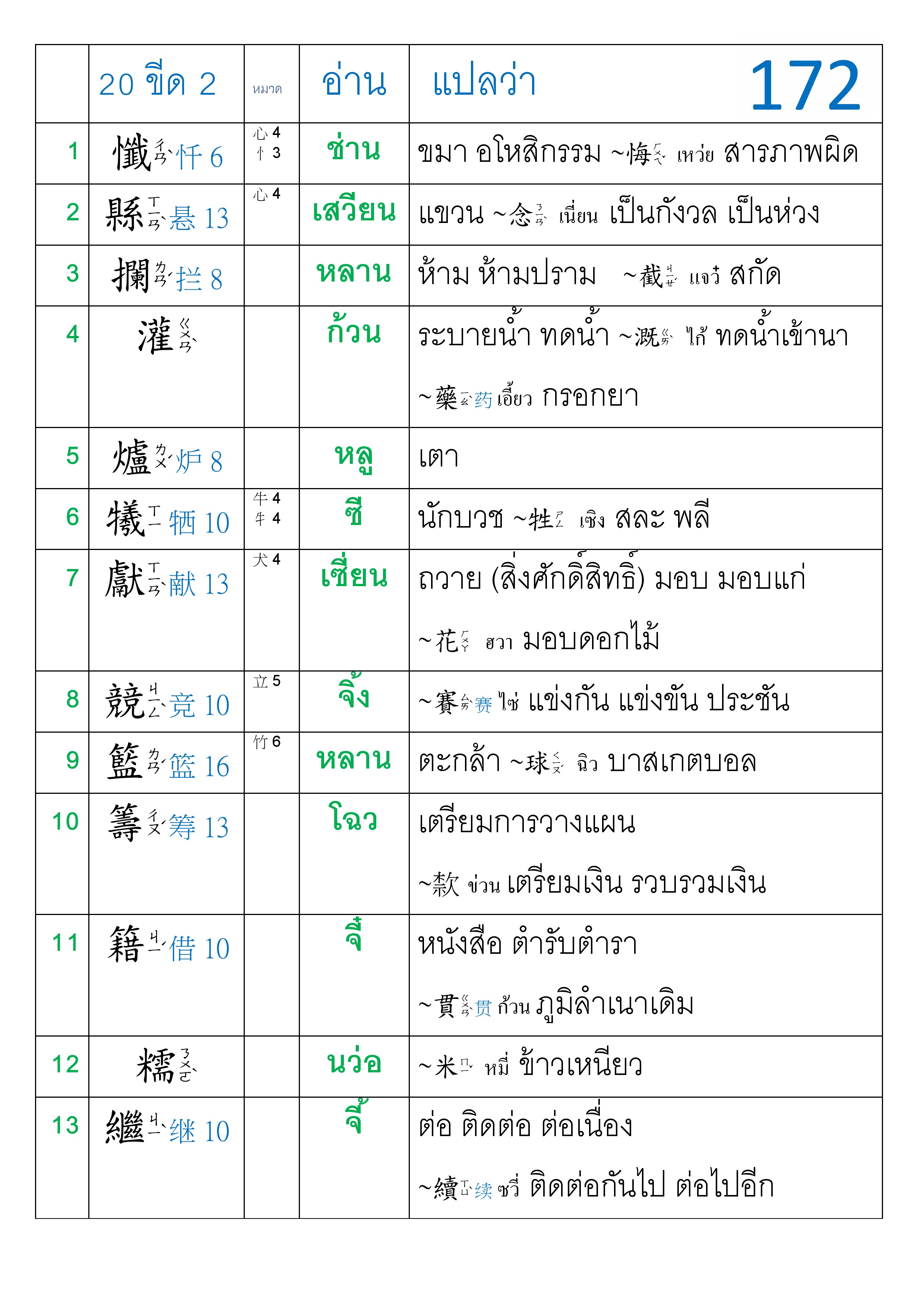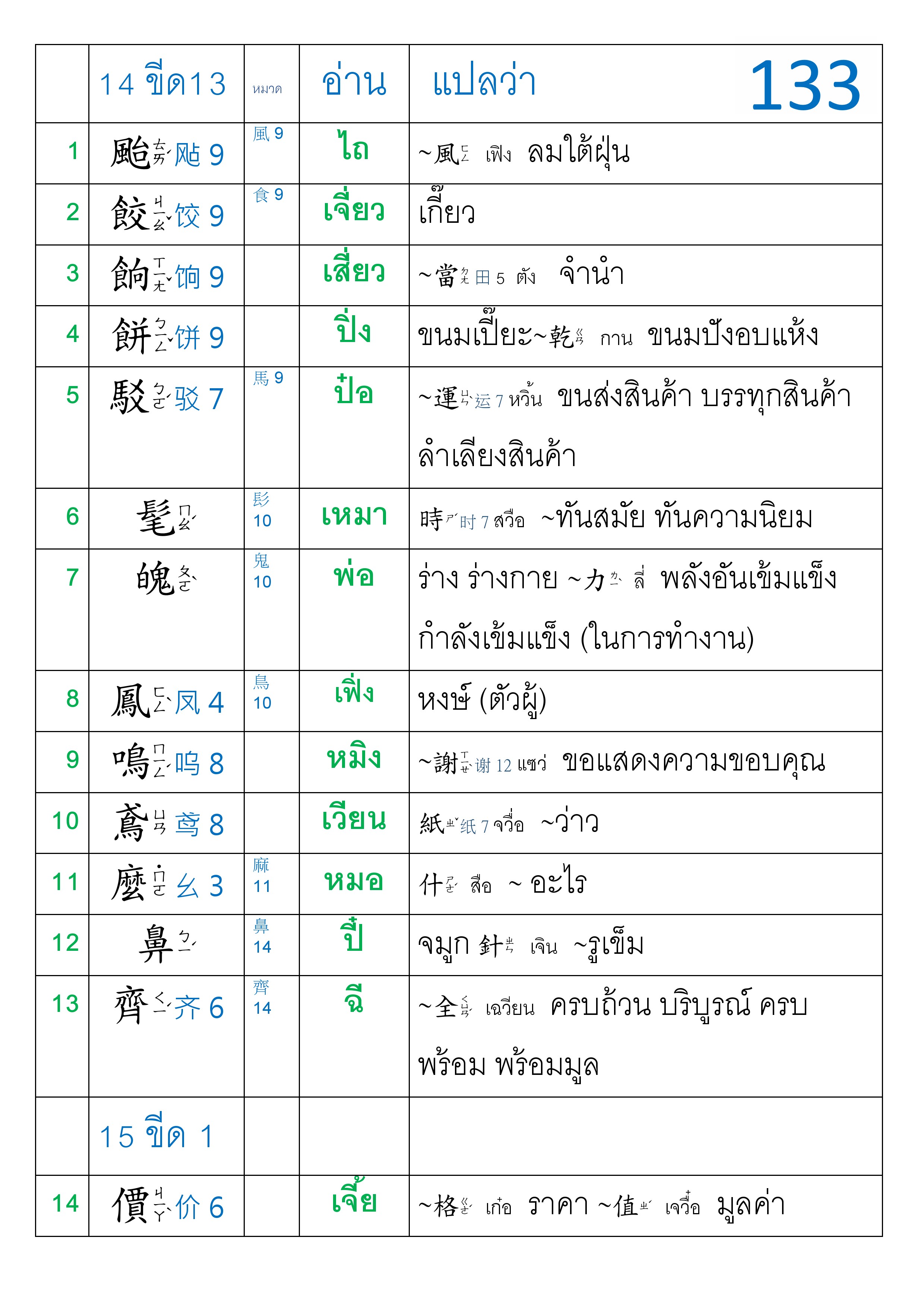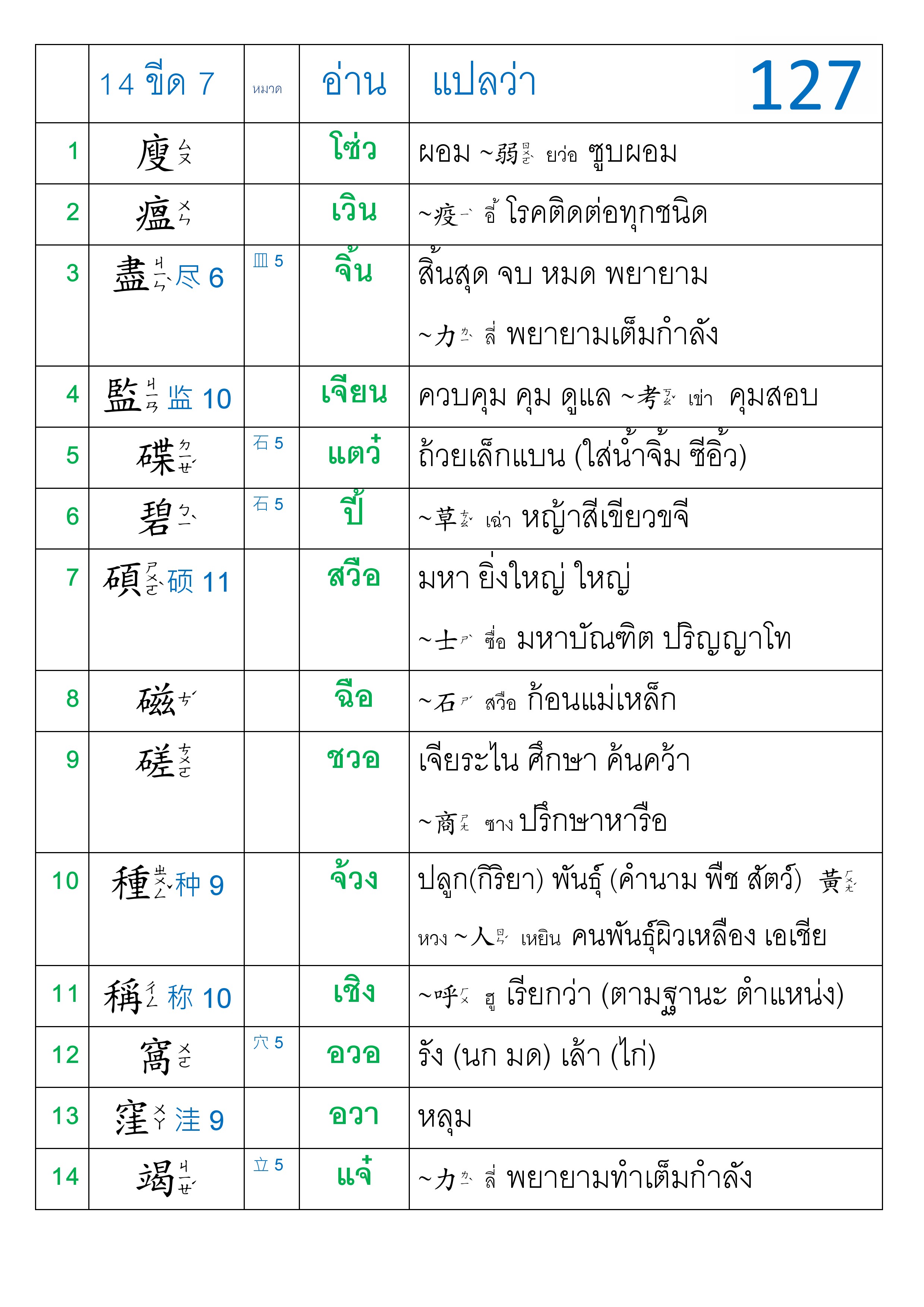 อักษรจีนเต็ม / คำย่อ - จำนวนขีด พร้อม จู้อิน |