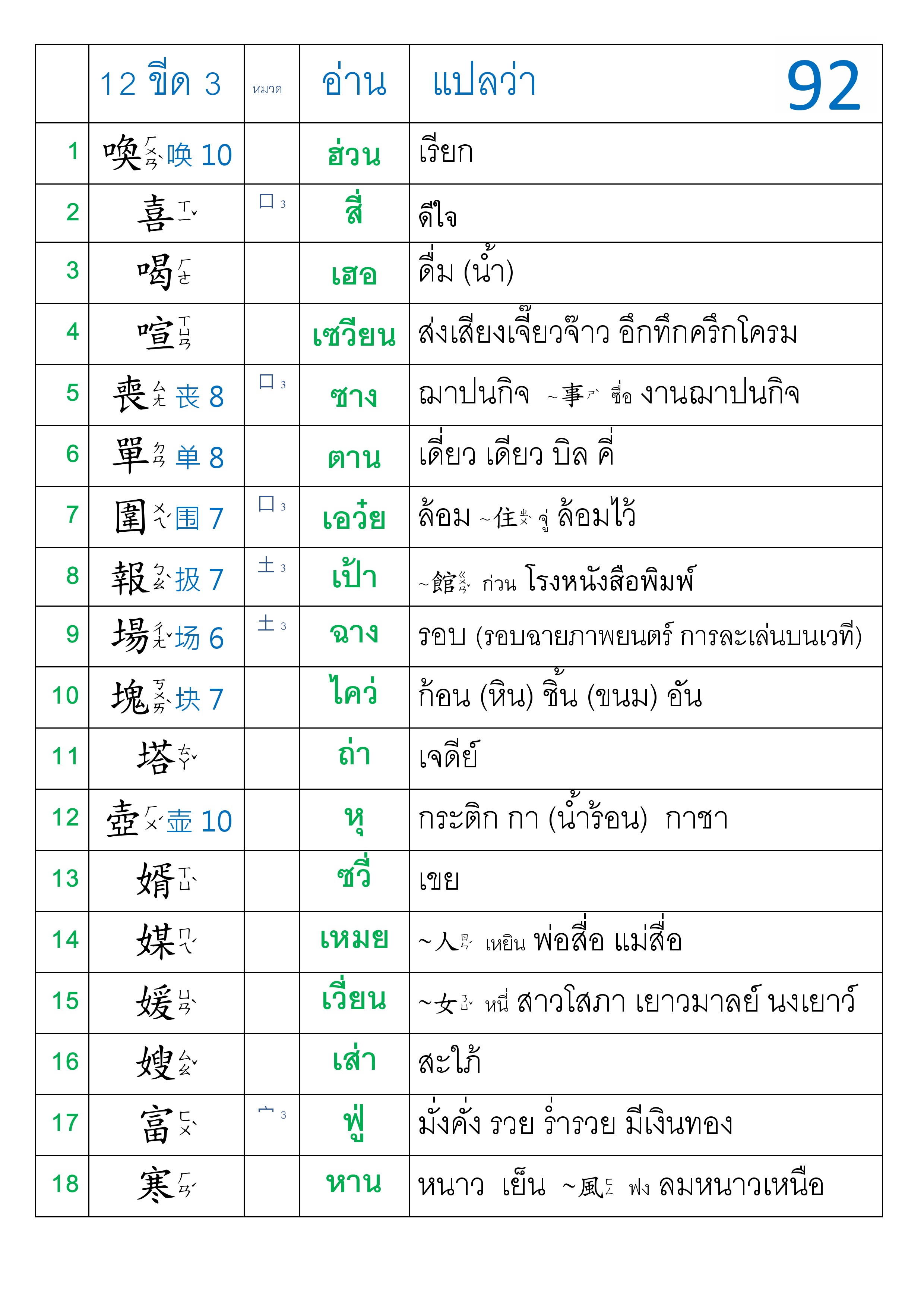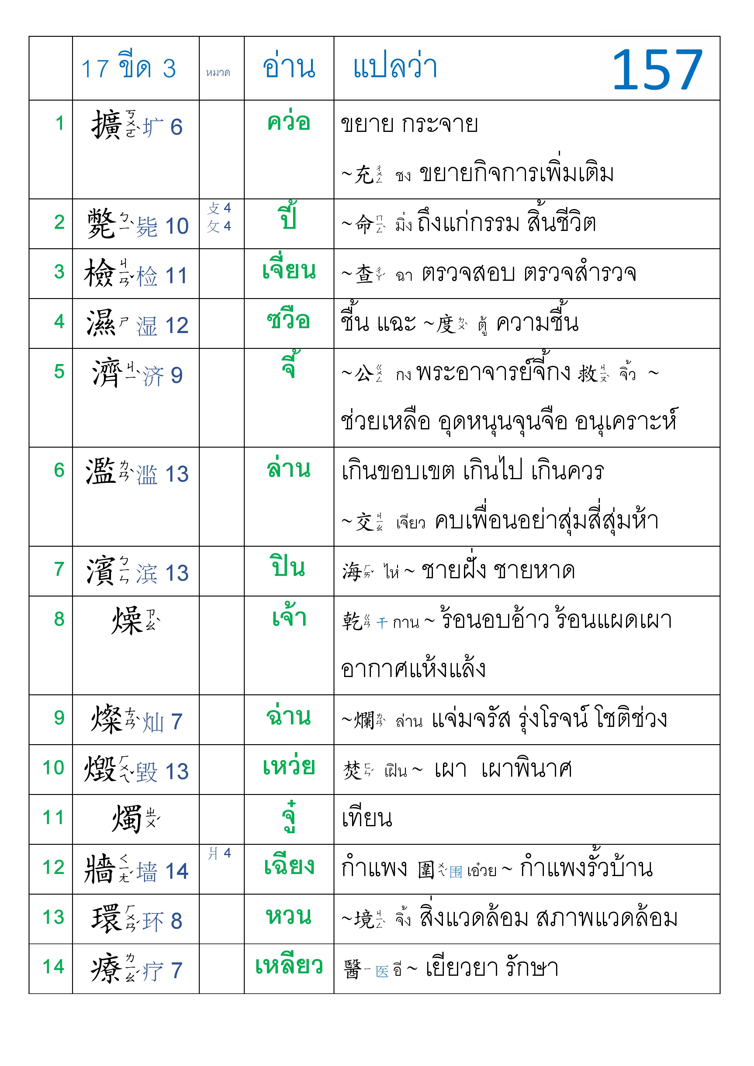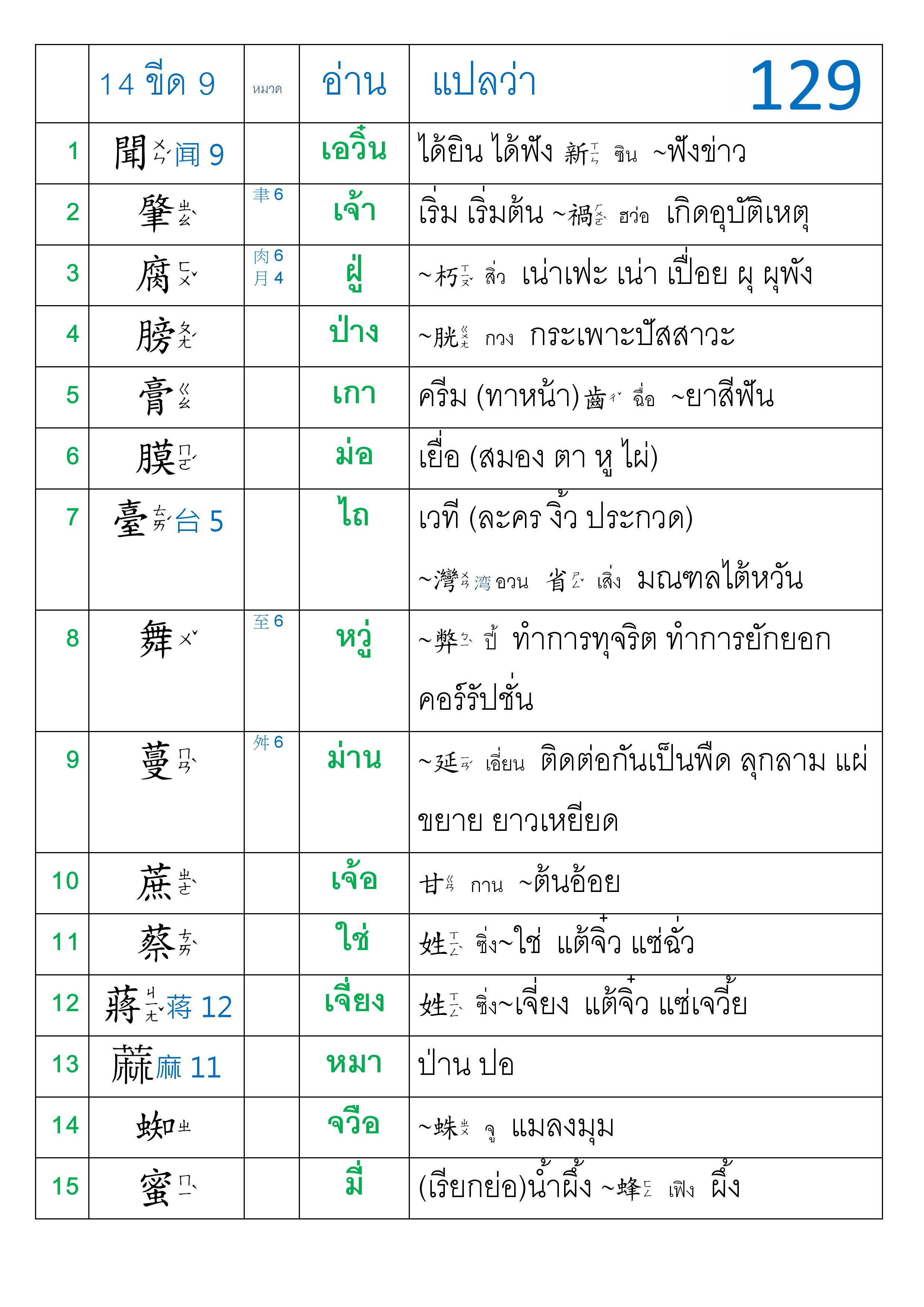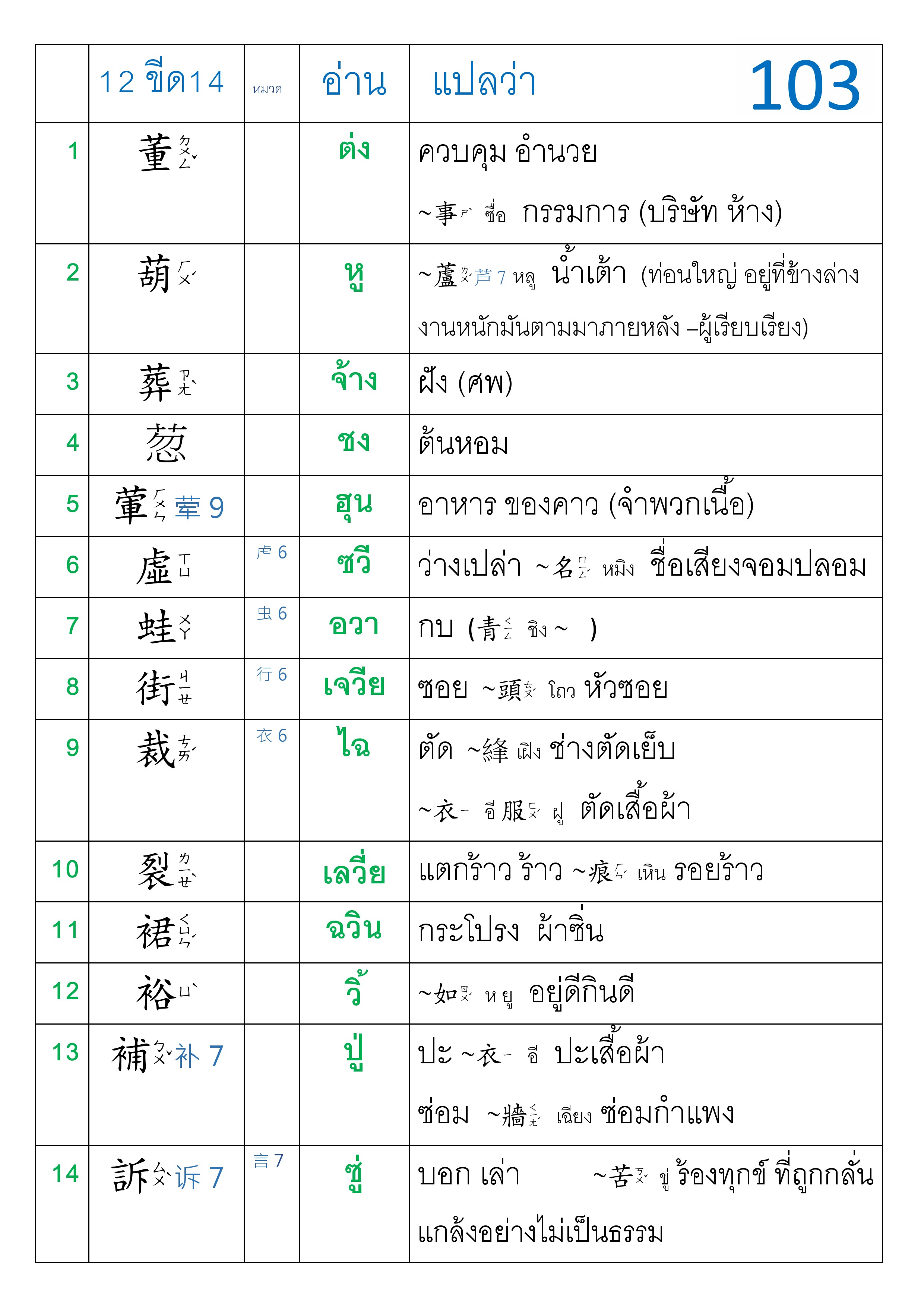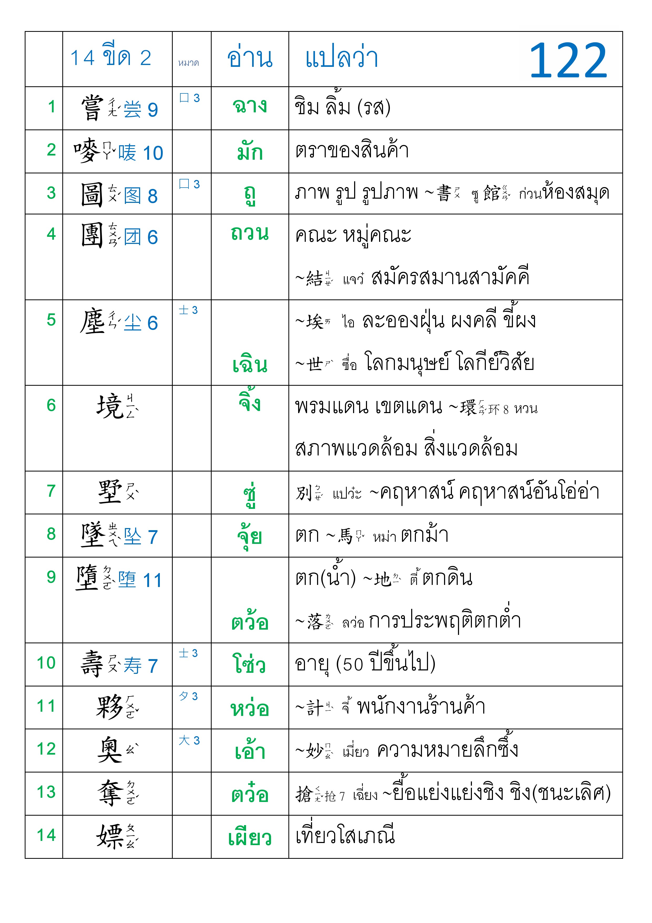 อักษรจีนเต็ม / คำย่อ - จำนวนขีด พร้อม จู้อิน |
