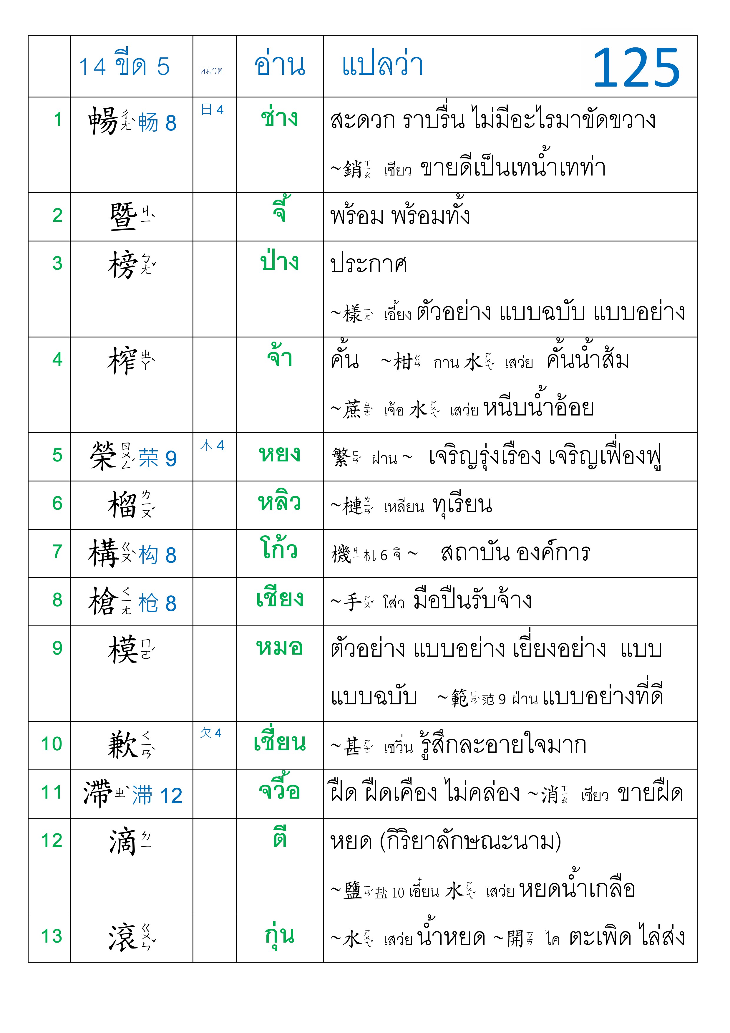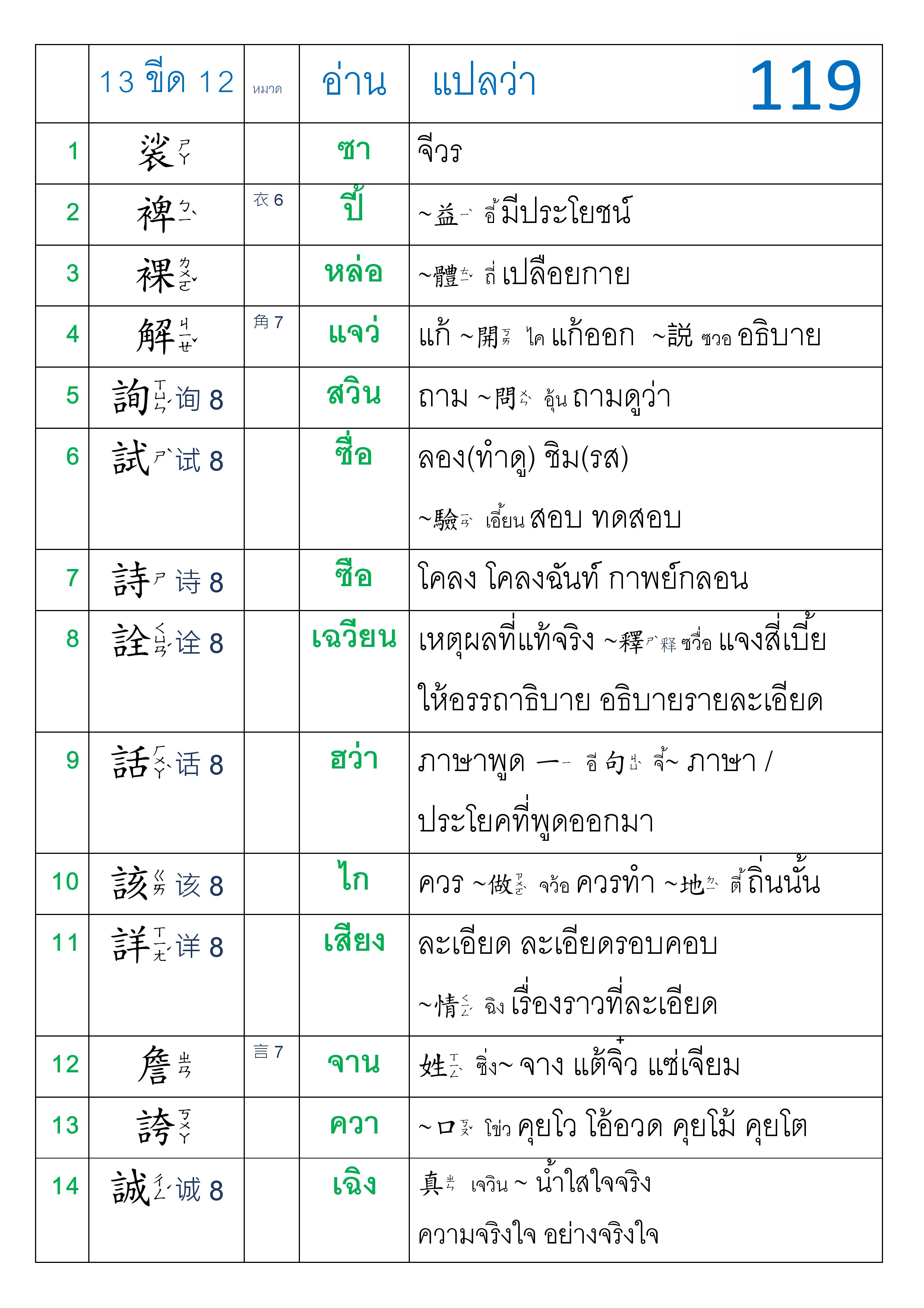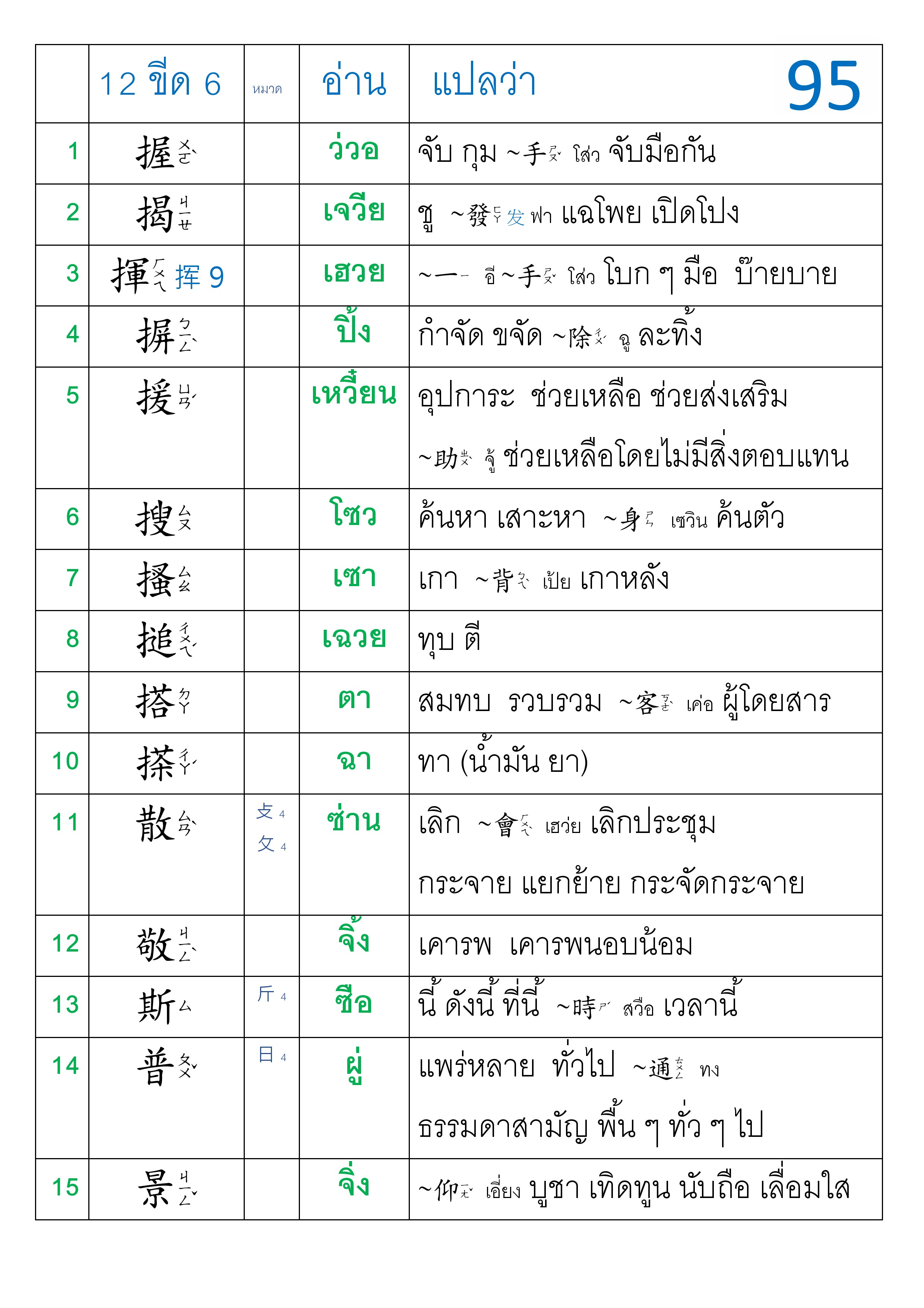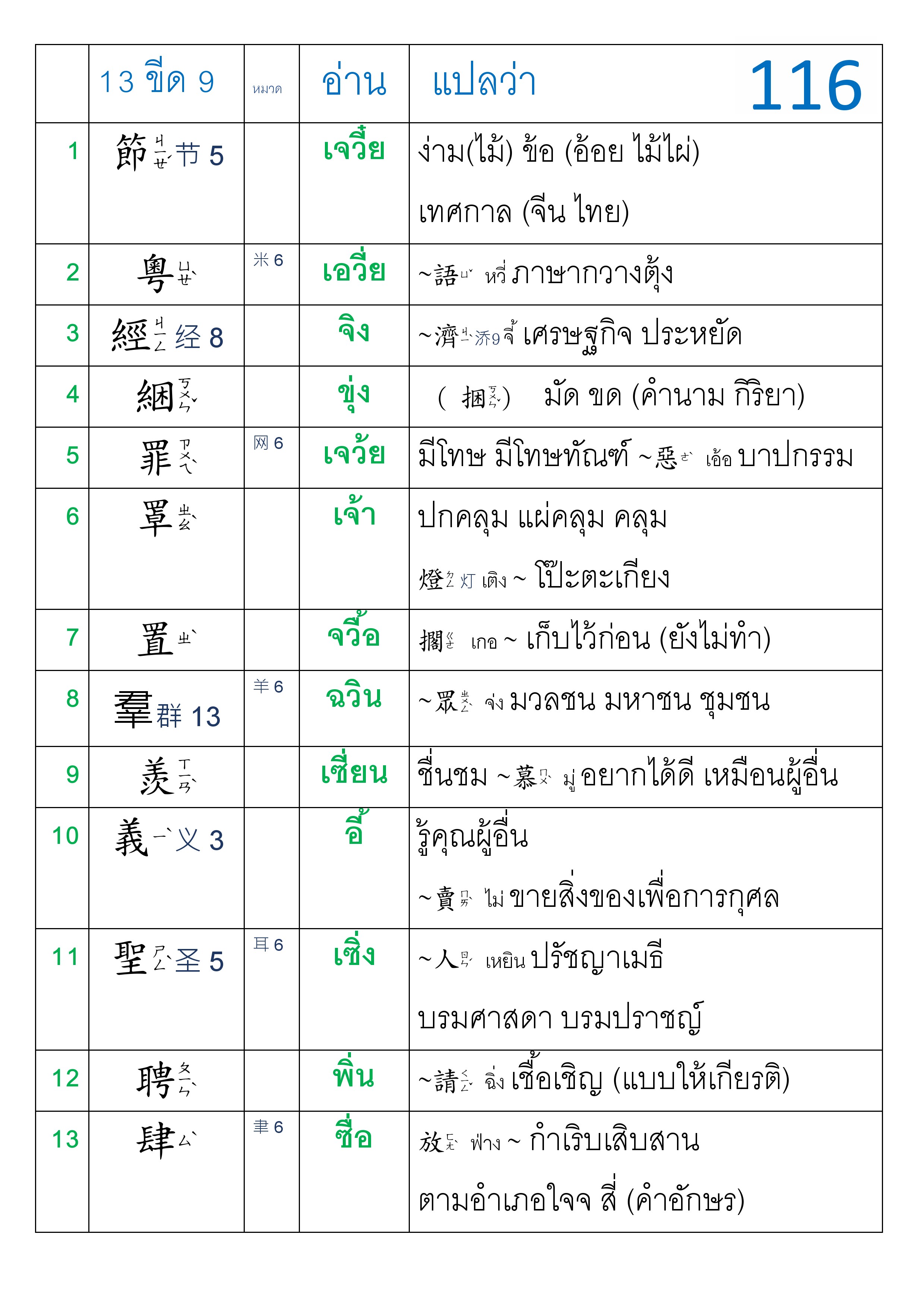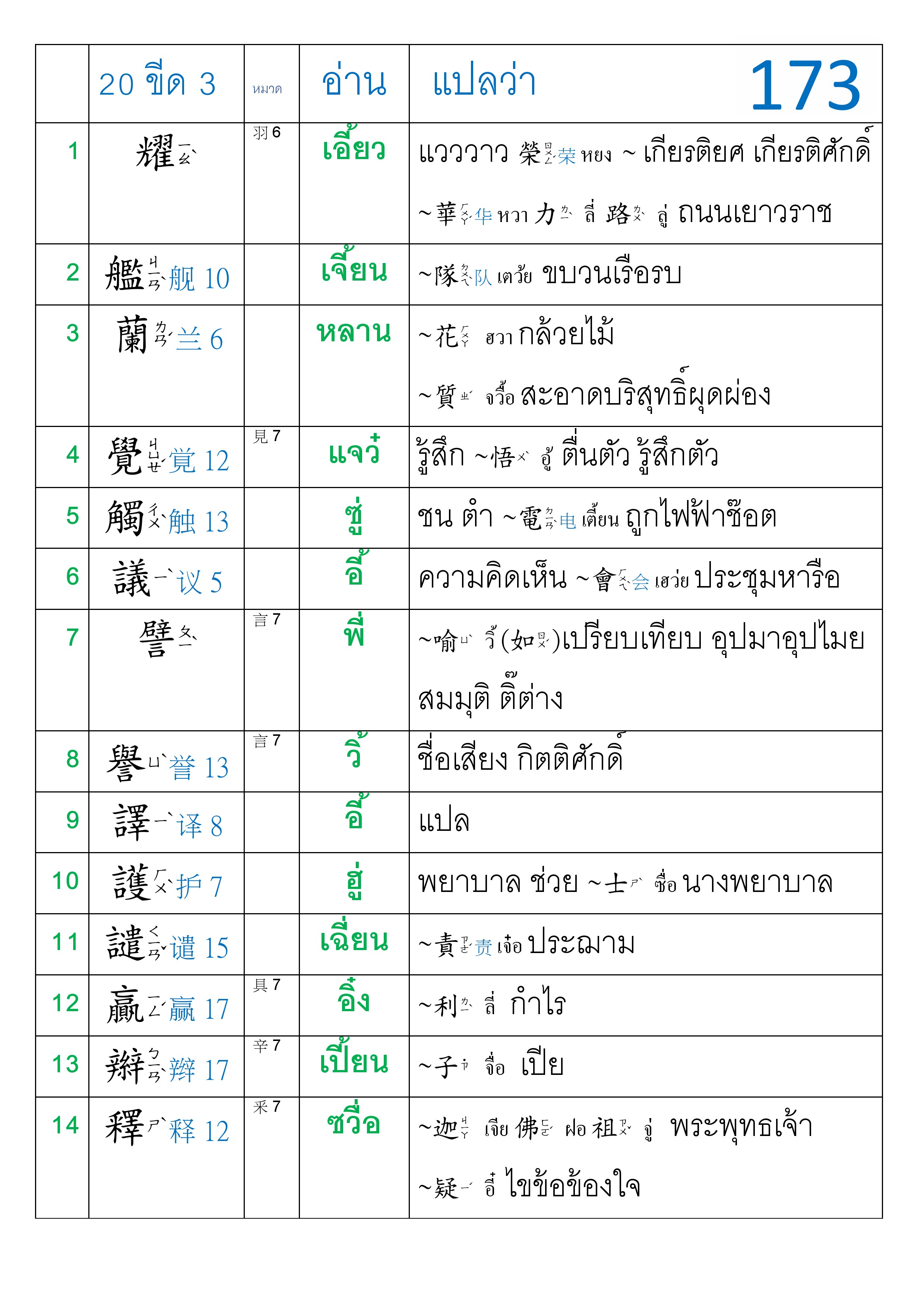 อักษรจีนเต็ม / คำย่อ - จำนวนขีด พร้อม จู้อิน |