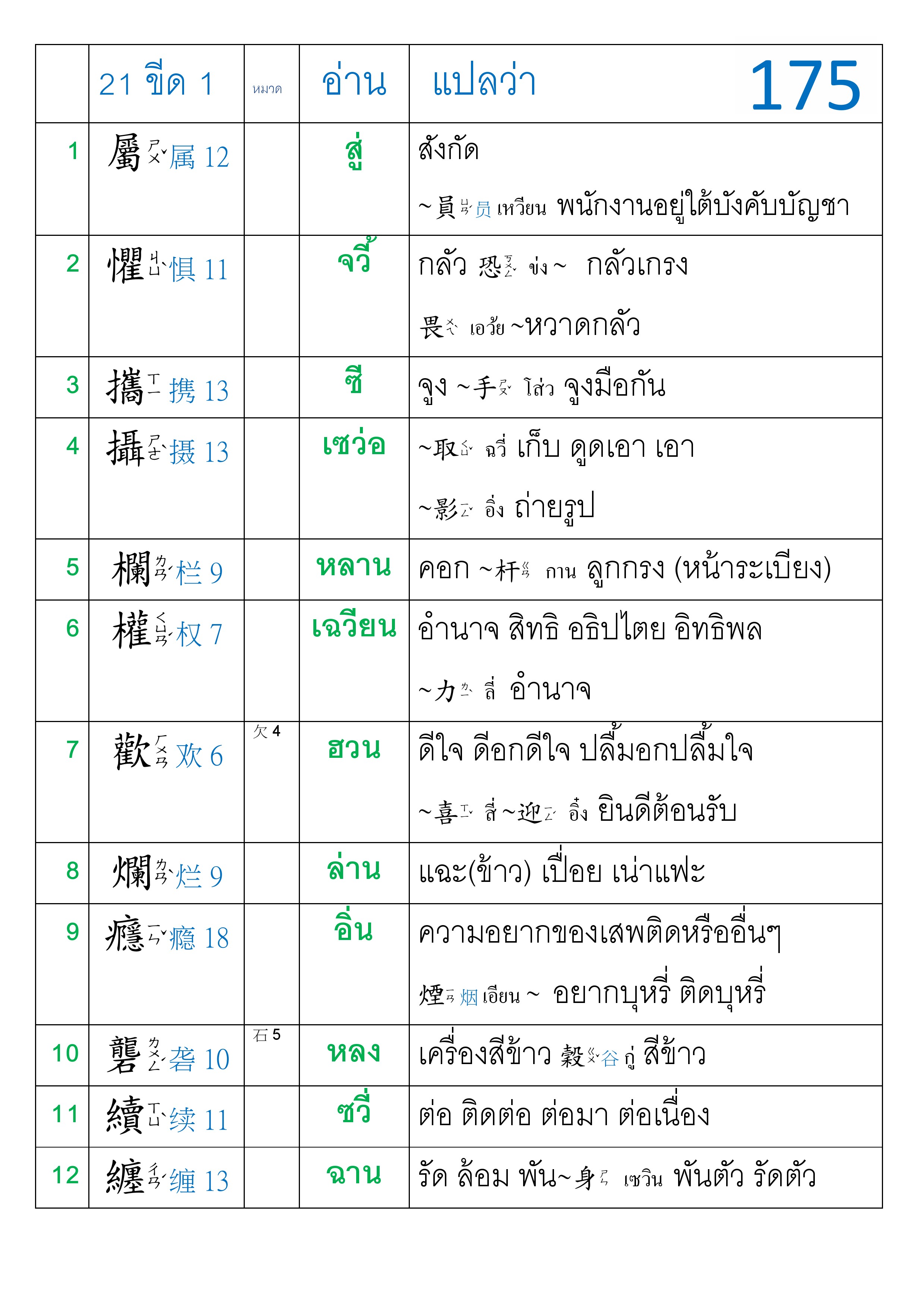 | สารบัญ คำเต็ม / ขีด / หน้า |